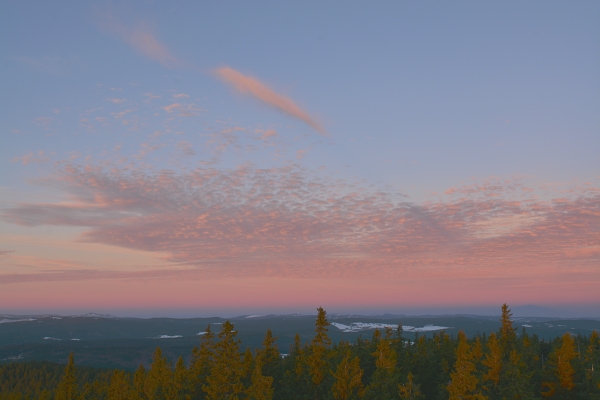 … v podobě rozmanitých oblačných a světelných výjevů okolo slunečního západu, opět zcela po zásluze nutících nejnedokonalejší komunikační prostředek – totiž slova – k utichnutí.