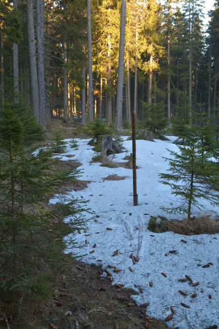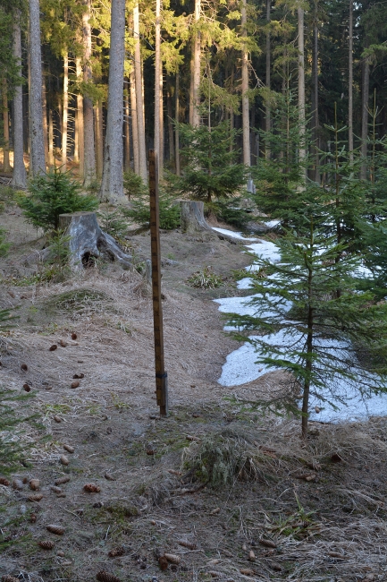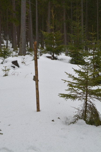 Není bohužel řídkým jevem, že uprostřed (nejen) šumavské přírody se občas lze setkat s následky působení jedinců, kteří v době, kdy se rozdávala inteligence, zjevně trpělivě vystáli mnohem delší frontu na přesně opačný sortiment, jehož si pak nabrali vrchovatou měrou. K takovým dozajista náleží i neznámá osoba na lyžích, jíž patrně nestačilo přečíst si údaj o síle sněhové vrstvy z náležité postačující vzdálenosti od spodní boubínské sněhoměrné tyče, ale cítila potřebu objet tuto naopak v těsné blízkosti.
