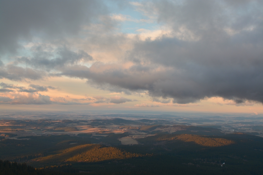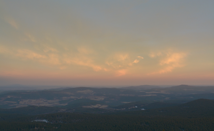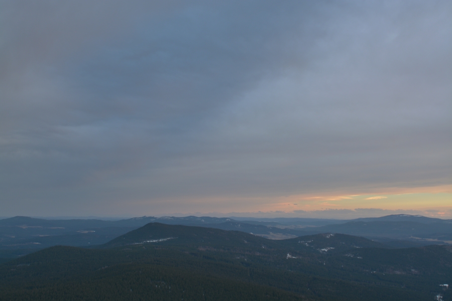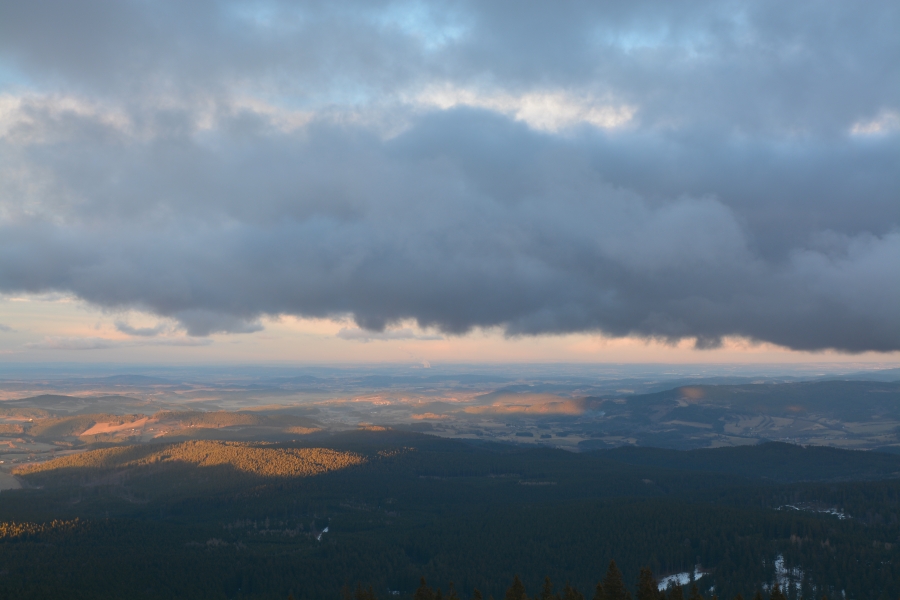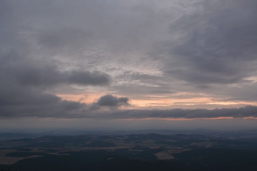 Nebýt výše uvedeného časového průzkumu, v jehož zájmu bylo nutno opustit bez možnosti návratu rozhlednu před sedmou (ještě včera šestou) hodinou, mohl být z vyhlídkové plošiny polapen novopečený březnový úplněk. Ani z jiné lokality, a to společně s Boubínem, mu to však, obklopenému stále přetrvávajícím oparem, neslušelo o nic méně.