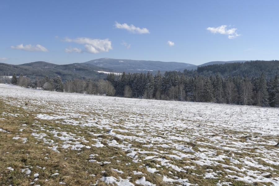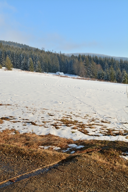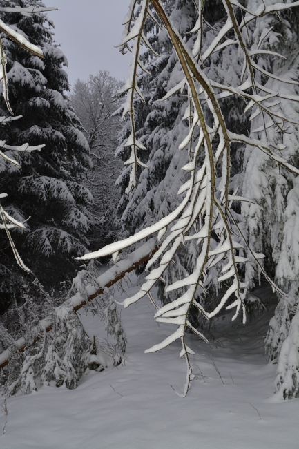 V lesích zatím pochopitelně přetrvává souvislá bělostná pokrývka, …