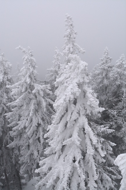 … by bylo, obzvláště pak na Šumavě, projevem nemalé naivity. Konečně možná ještě ve zbytku tohoto týdne uvidíme. Teď je ovšem čas na úvodem zmíněné překvapení. Postarali se o ně půvabní drobní obyvatelé boubínských lesů. Ještě na rozhledně nebylo možno přeslechnout jejich veselé štěbetání a dole pak nešlo vyhnout se vzpomínce na loňský prosinec, konkrétně jeho třetí den – viz http://vimperk.eu/index.php/vimperk/18027 . Tehdy jsme se společně zastavili u velmi zvláštně vyhlížejícího smrku, vděčícího za svůj vzhled právě tvorečkům, kteří se tu dnes hlásili k světu v celých hejnech a bezpochyb slavili zásnuby.