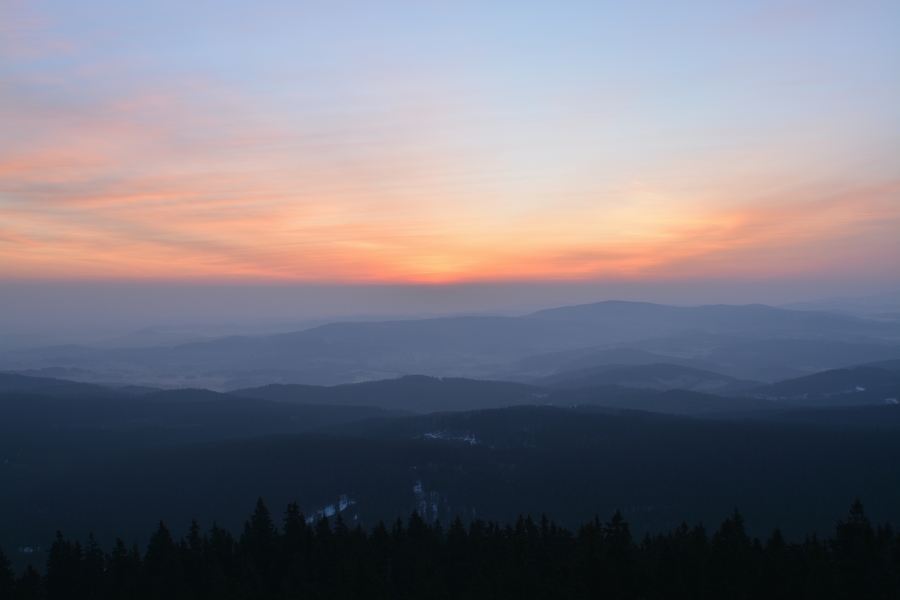 Nejpůsobivější krásu ovšem chystal východní obzor. Podobně jako naživo na boubínské věži si jistě i zde zaslouží, aby se její plné postupné vychutnání neslo bez dalších slov.