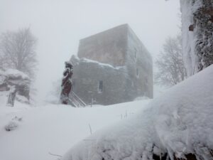 Sníh zasypal Vítkův hrádek————————————————— Sníh zasypal Vítkův hrádek a lidé si tak zde mohli v neděli stavět sněhuláky.