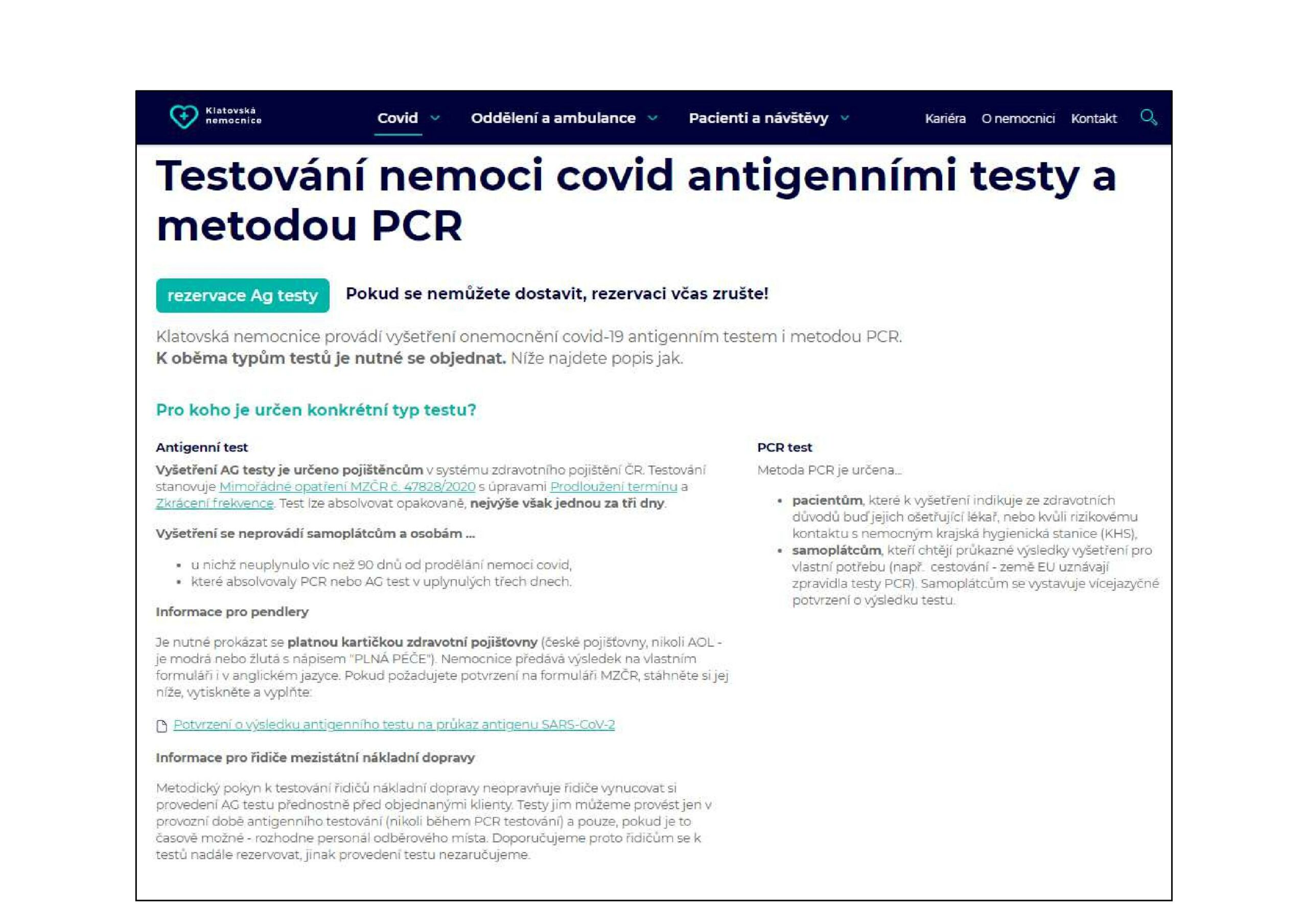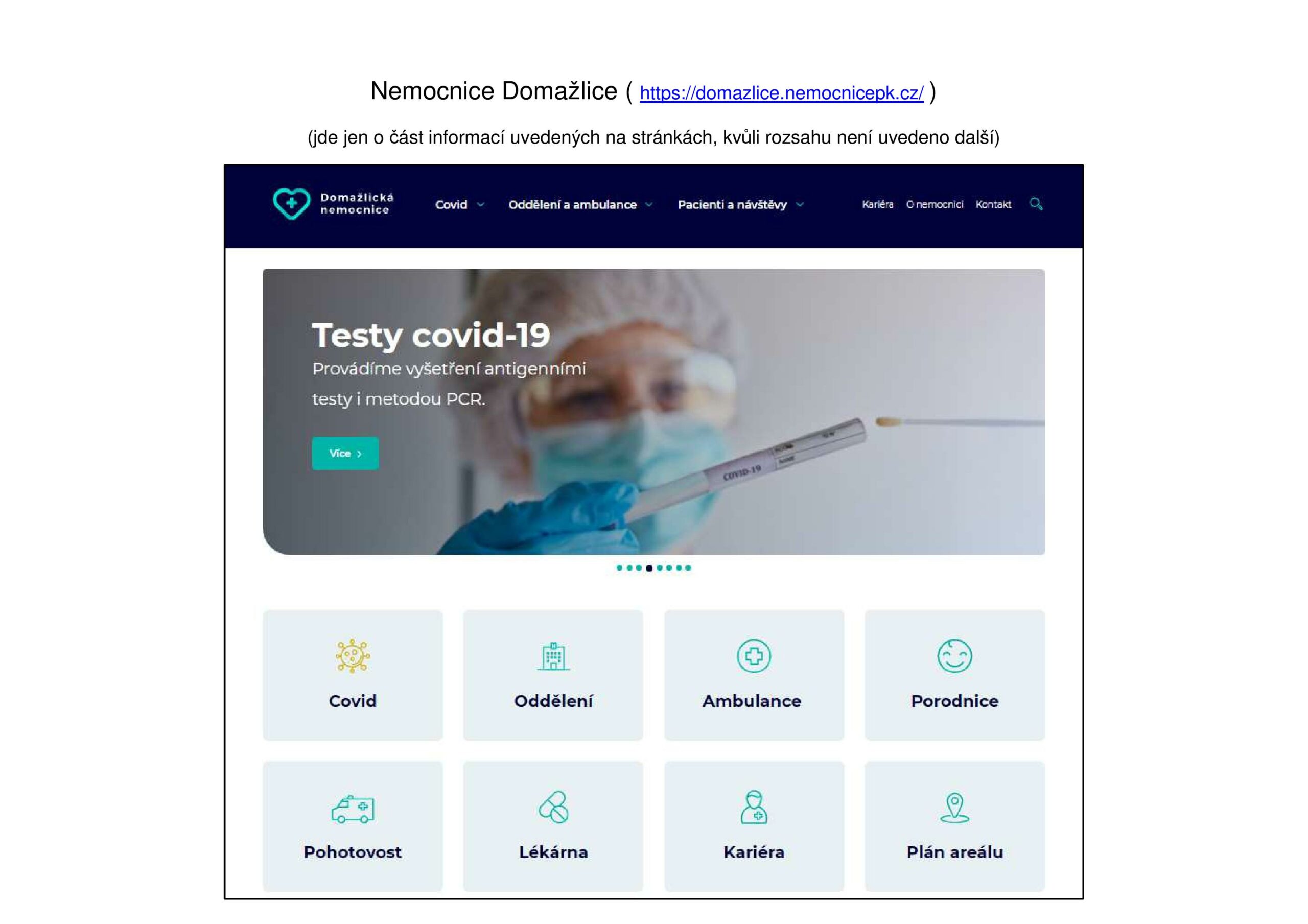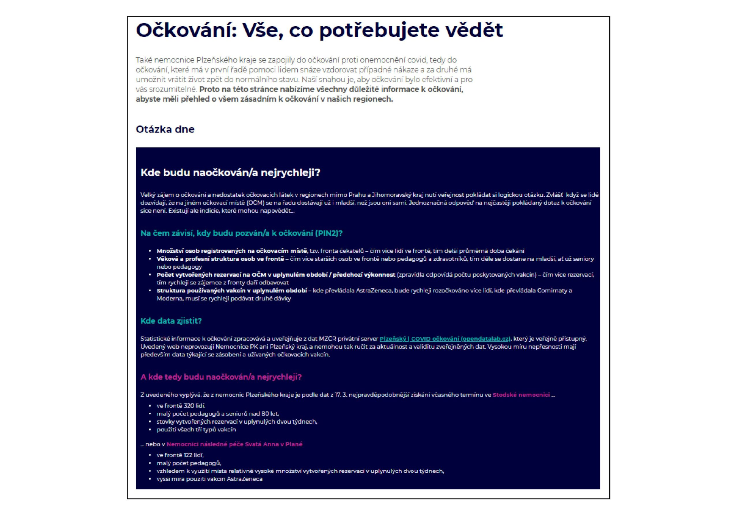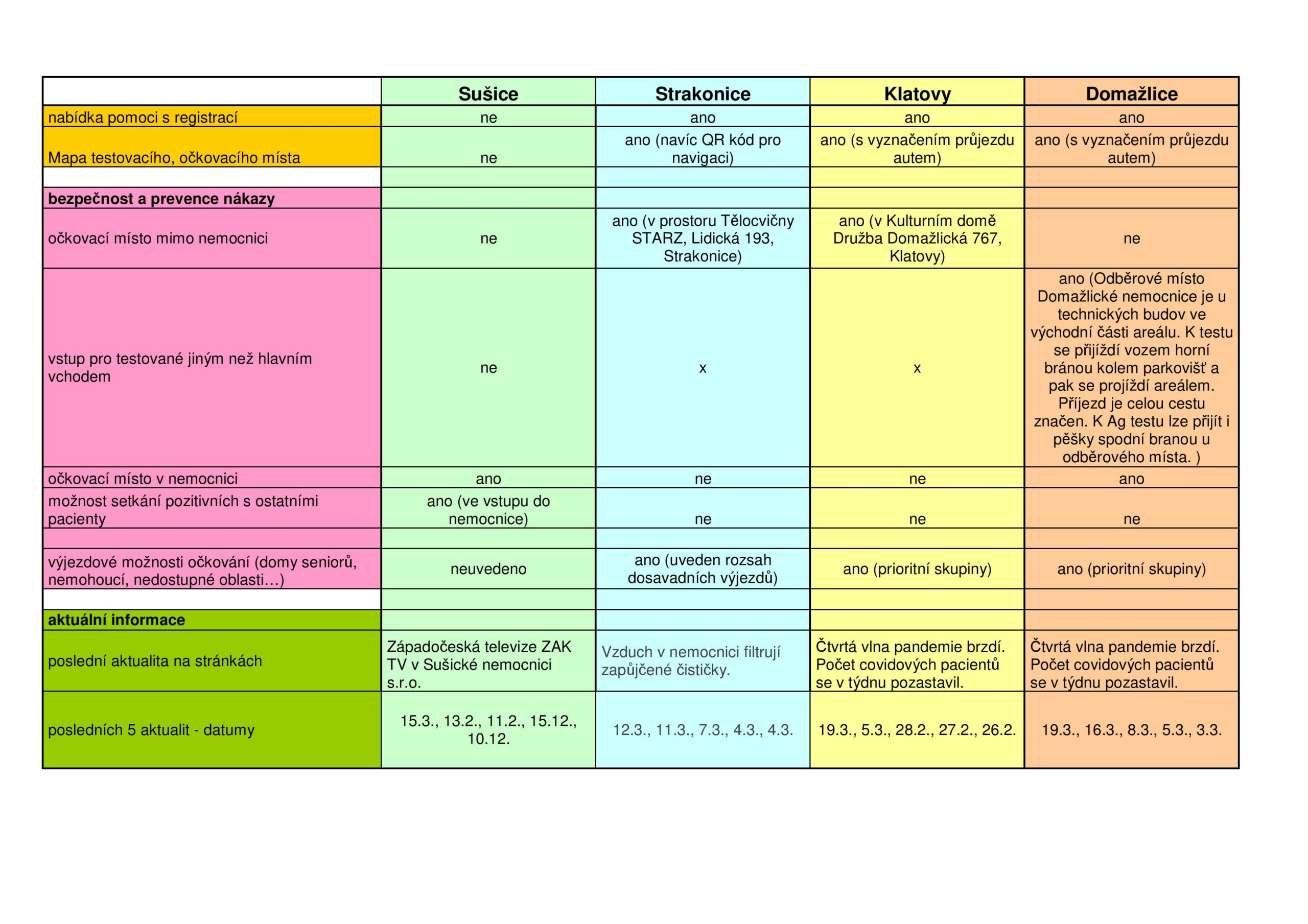 Přehled a srovnání informací (o Covidu-19) poskytovaných na webových stránkách regionálních nemocnic v Sušici, Klatovech, Strakonicích a Domažlicích.