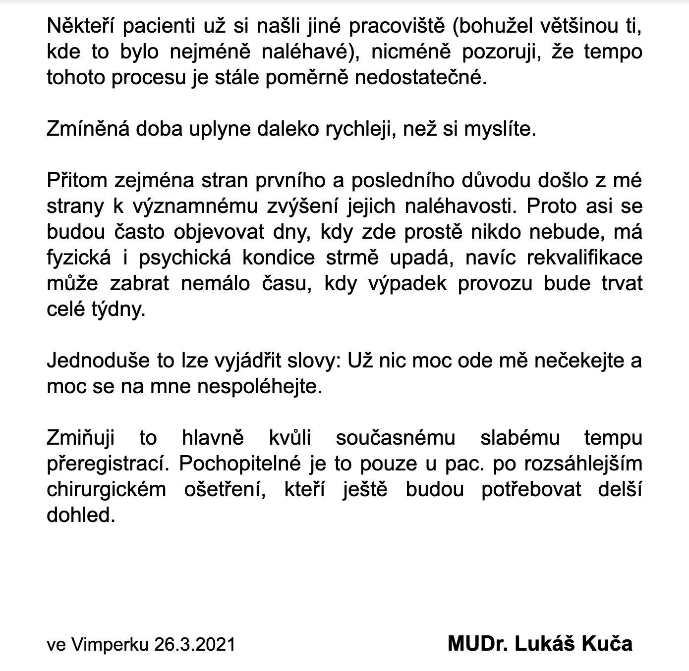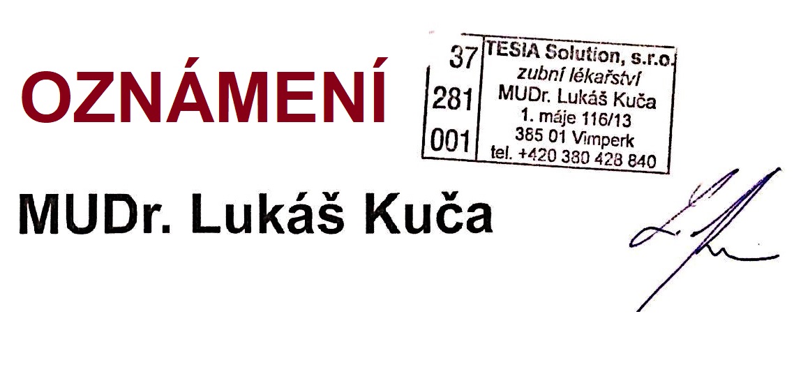 MUDr. Lukáš Kuča má nové telefonní číslo : 704 915 919 (pondělí – pátek od 10:00 – 12:00 hodin)
