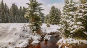 Středeční ráno ve Vltavském údolí Přestože byla vánice, tak byly ještě znatelné stopy vlka a jeho značkování. Foto : Bohumil