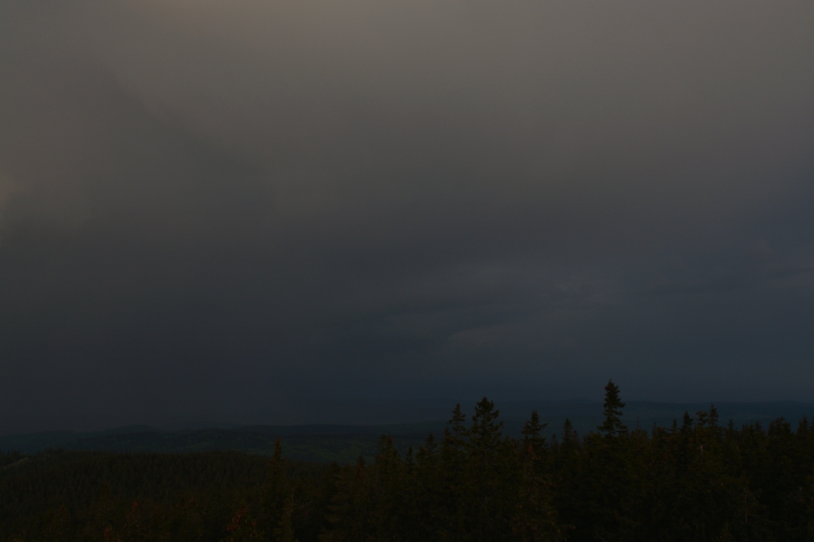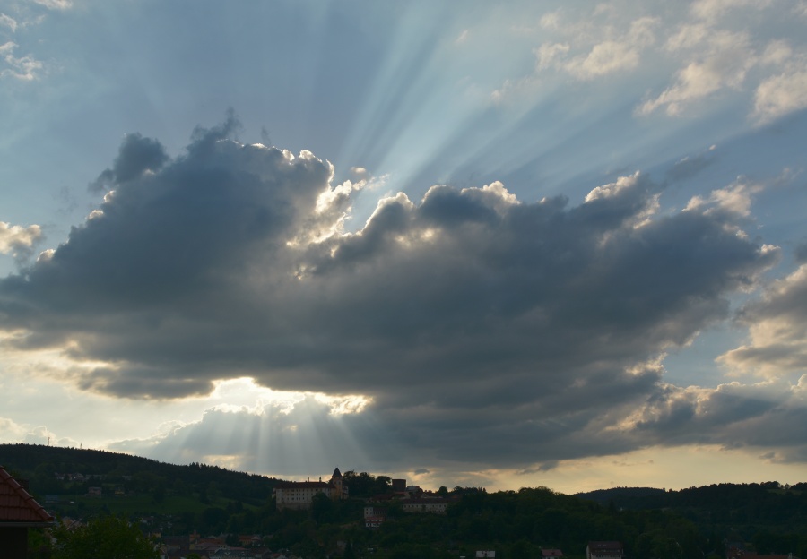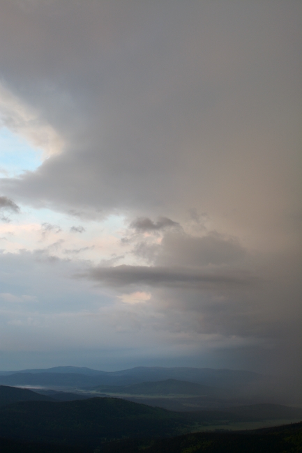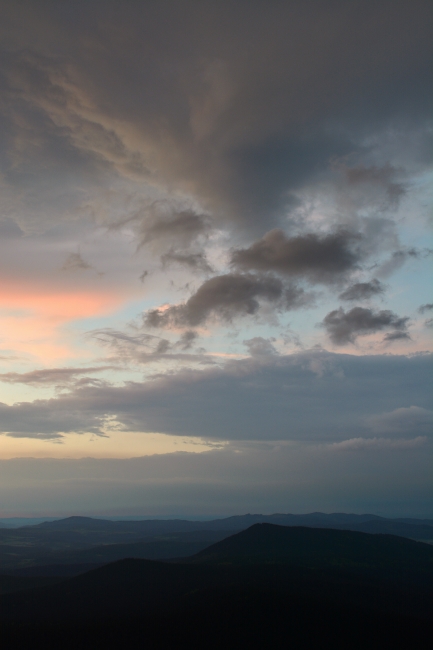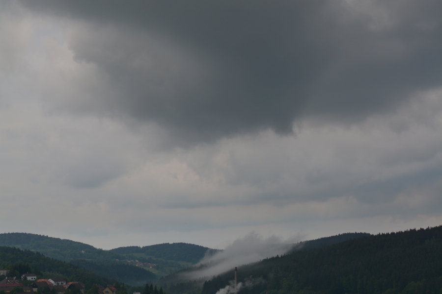 … nýbrž oblačnost, za níž byly ukryty. Vyvořila totiž úžasně kontrastující temné pozadí celkem trojímu zřetelnému zablesknutí, naprosto nečekanému a neprovázenému následným hřměním. Jednalo se tak o pouhé blýskavice, jejichž centrum leželo odhadem kdesi poblíže hranic, možná i dále. Za daných podmínek bylo bohužel vyloučeno onu májovou bouřku fotograficky zachytit …