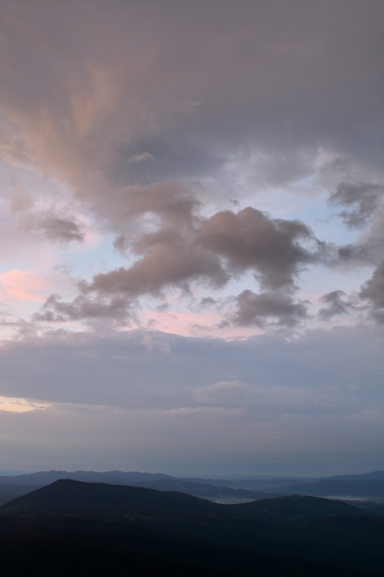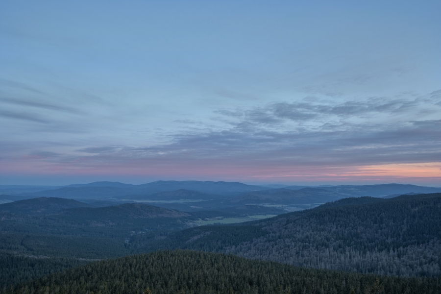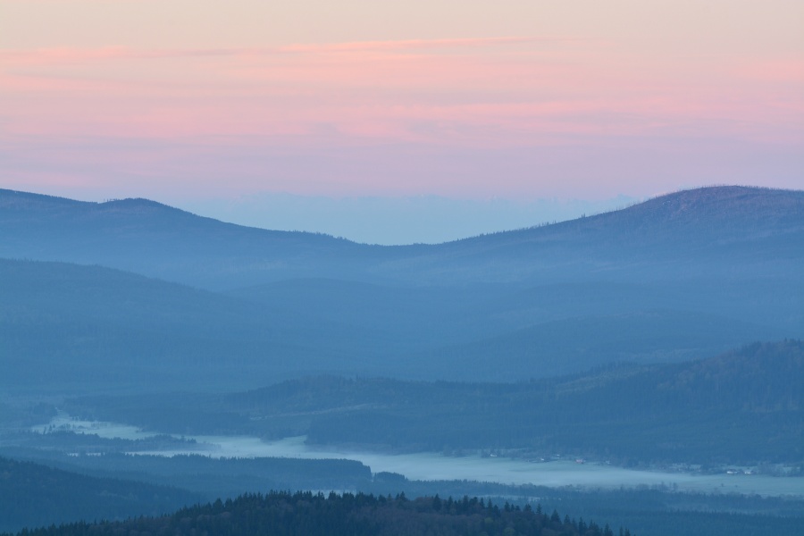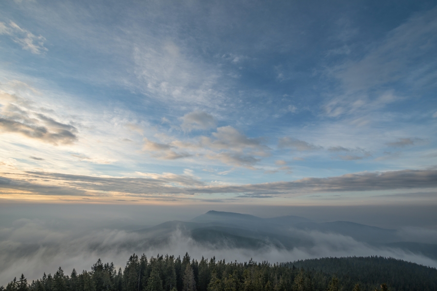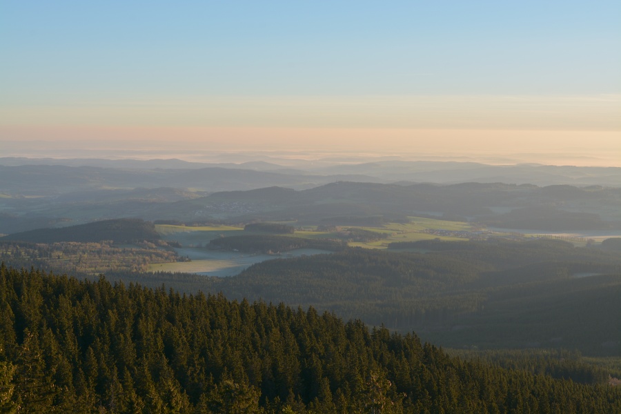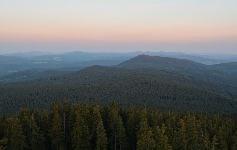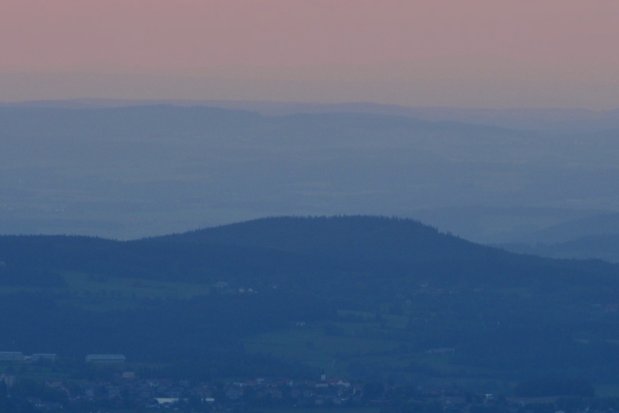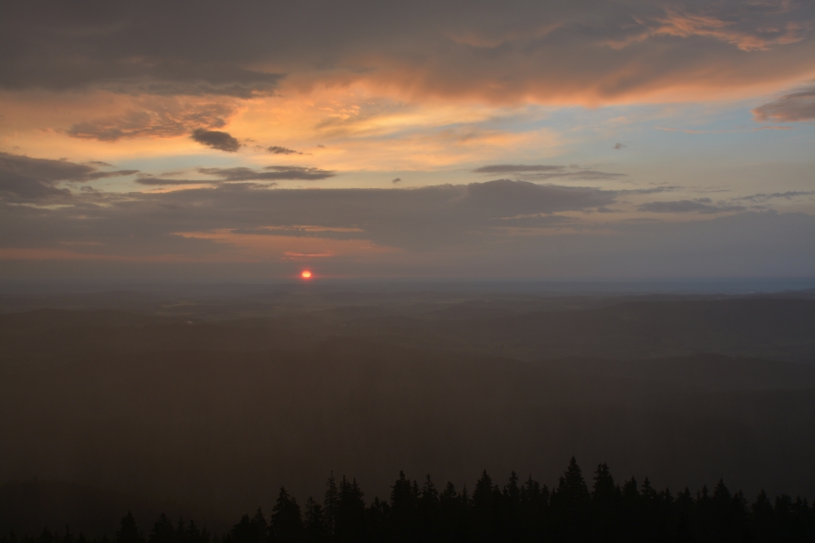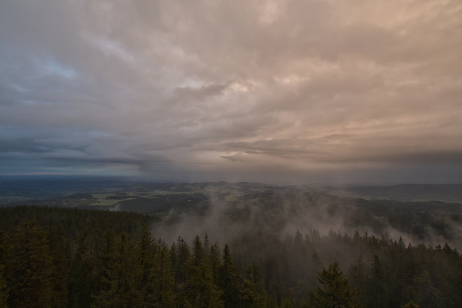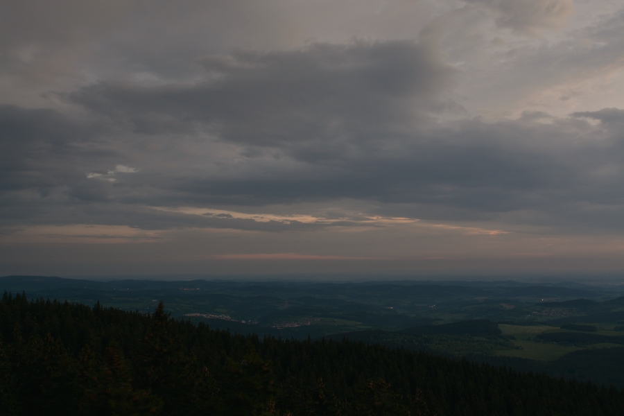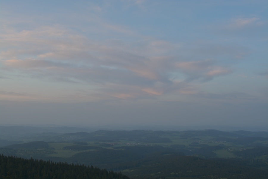 Boubínská uvítání mlžnou čepicí nejsou ničím neobvyklým – a v tomto končícím máji by o ně, kdyby člověk chodil nahoru naslepo bez předchozího uvážení, rozhodně nebyla nouze. Také dnes představovala zmíněná situace jistotu již před výstupem, ale cosi k němu přesto vybízelo. První pohled z věže, předem očekáván, nepřekvapil … a nezměnil se prakticky po více než hodinu od neviditelného slunečního východu. Bylo zřejmé, že půjde o poctivou zkoušku trpělivosti.