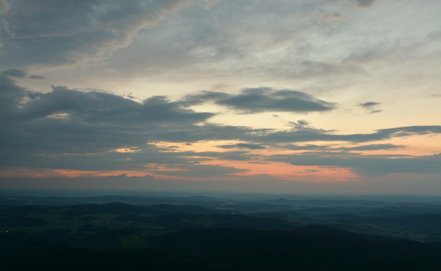 Chladné počasí tohoto svým způsobem podivuhodného měsíce s sebou nese jeden takřka již charakteristický rys – kdykoli se vyjasní, může nastat až neuvěřitelně famózní ostrá dohlednost (o čemž tu nejlépe svědčí 10. květen). Stálo tedy za vyzkoušení, co v daném ohledu přinese po krásném slunečném sobotním odpoledni boubínský večer. Na alpském směru převládala nad obzorem oblačnost, …