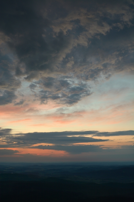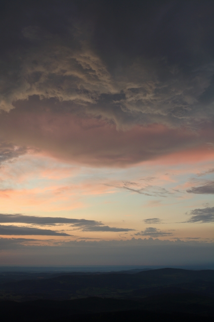 Postupný barevný útlum, provázený však bohatě po obloze rozptýlenou mnohotvárnou oblačností včetně nepřehlédnutelných srážkových aktivit na obzoru, …