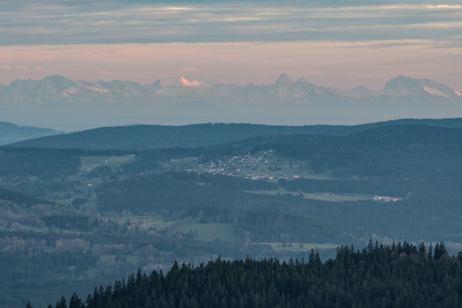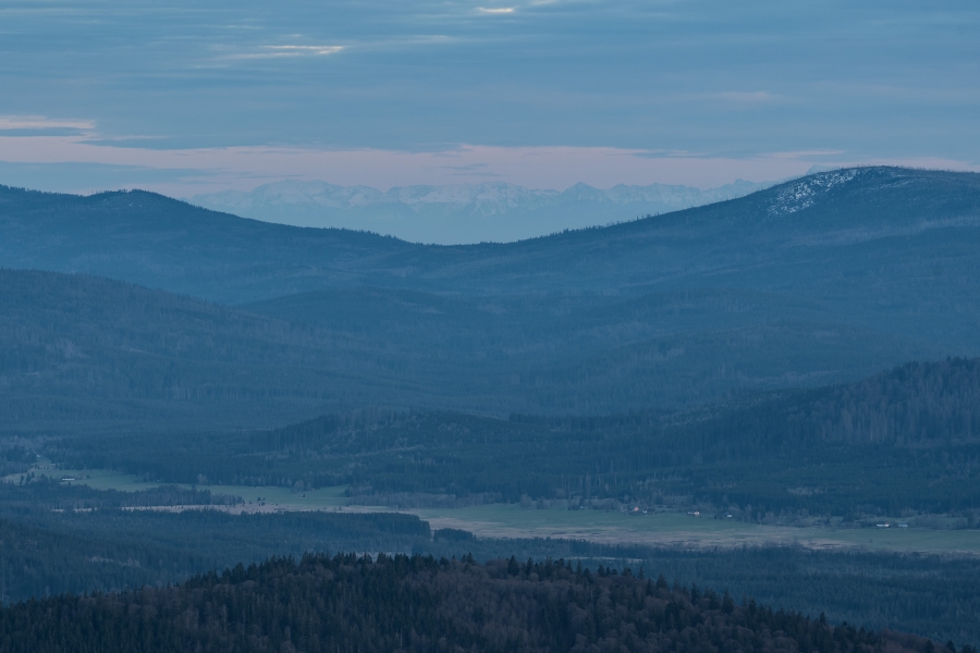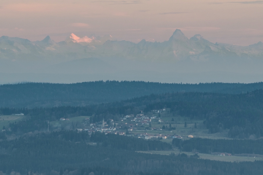 … v nichž vše působilo dojmem, že sluneční vítězství na sebe naopak nenechá dlouho čekat. Současně se nedalo pochybovat o tom, že dohlednost ke Klínovci (nad chvilkově osluněným Vacovem o snímek výše) či Alpám tím vybojována nebude.