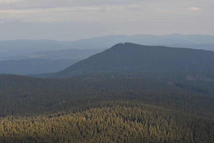 … ovšem obrat o sto osmdesát stupňů přinesl odměnu v podobě dokonale zřetelného a v mezích možností (přece jen i zde vládla jakási limitace slabým oparem) též ostrého Klínovce.