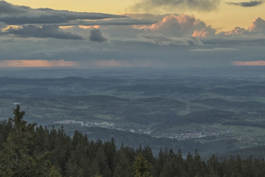 Najdou se pak chvíle, v nichž člověk blahořečí existenci videokamer na rozhledně, které onu čepici skutečně potvrdí v tomtéž čase, kdy se nad večerním Vimperkem objeví něco, co by za příznivých okolností pohledem z Boubína zapůsobilo ještě mocněji.