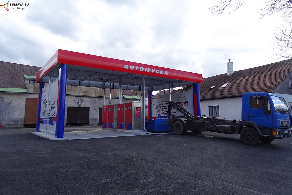 Poblíž plaveckého bazénu v ulici Mlýnská ve Volarech roste nová samoobslužná myčka. Prozatím není v provozu.