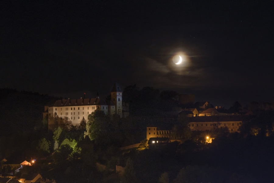 Večerní obloha nad vimperským zámkem pak zcela jasně naznačila, co přinese první letní noc.