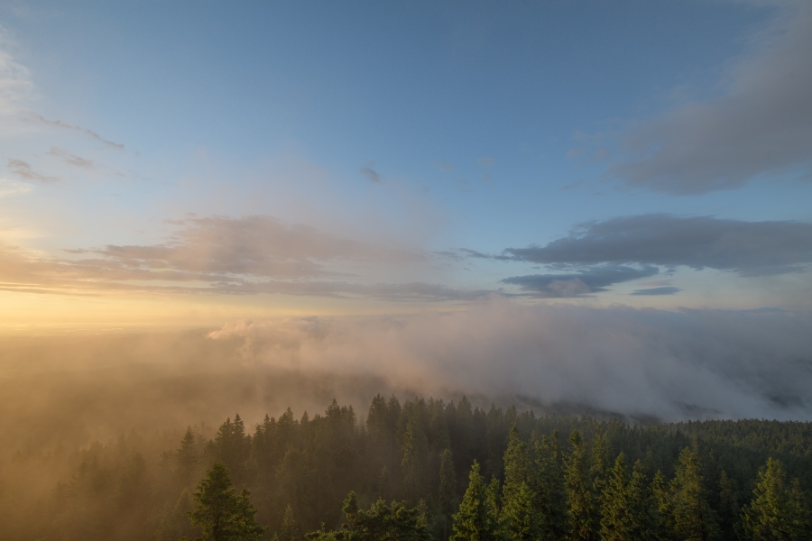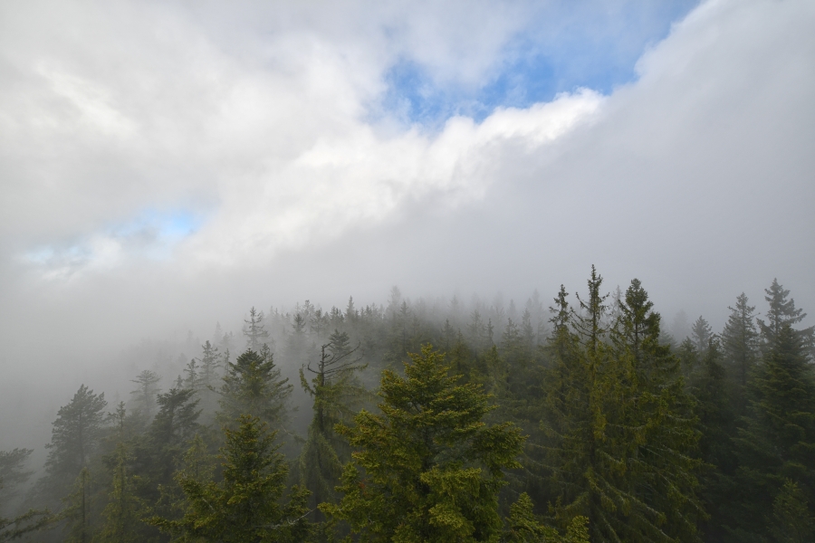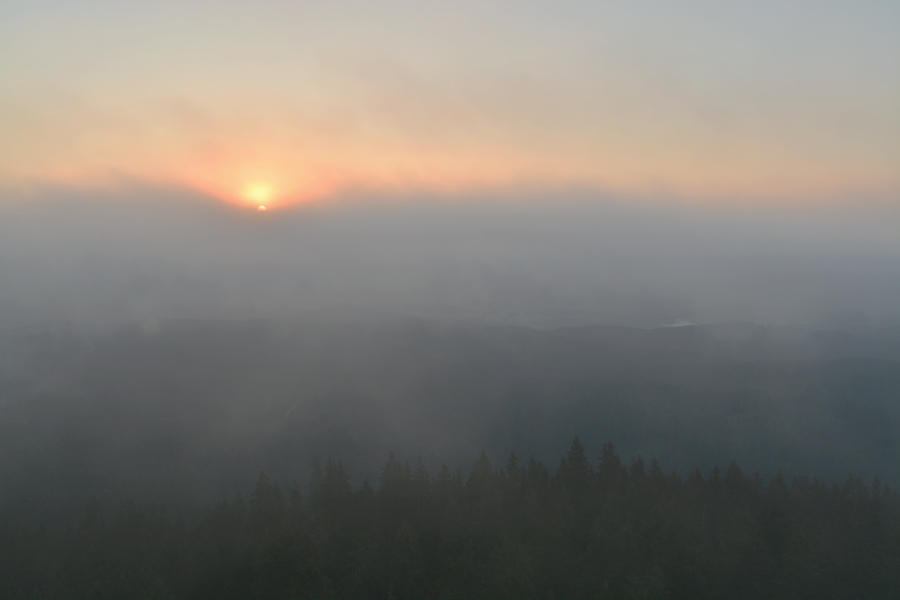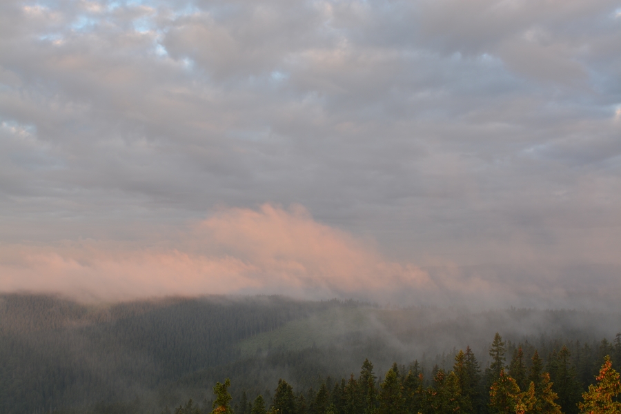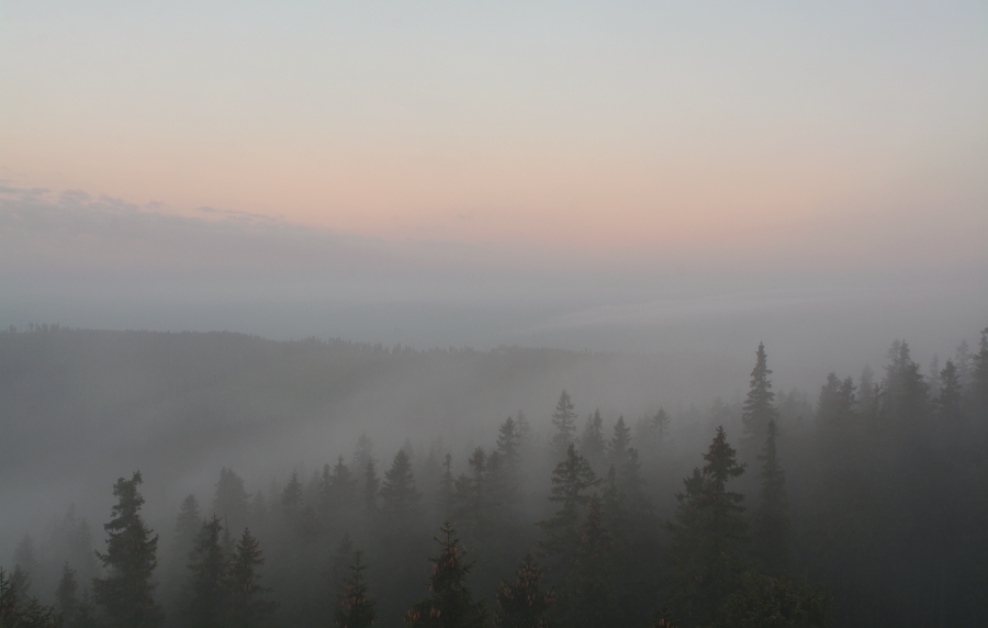 … obklopený parami z okolních lesů a současně též neustálými proměnami se vyznačující nízkou oblačností.