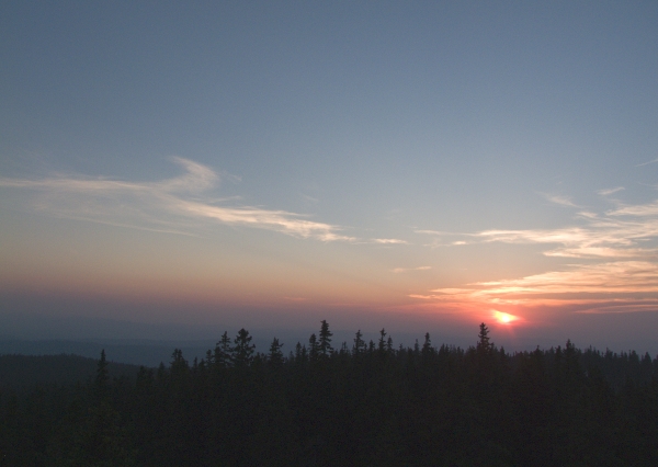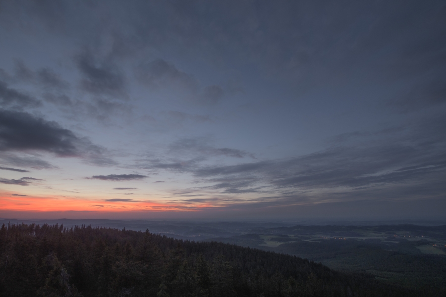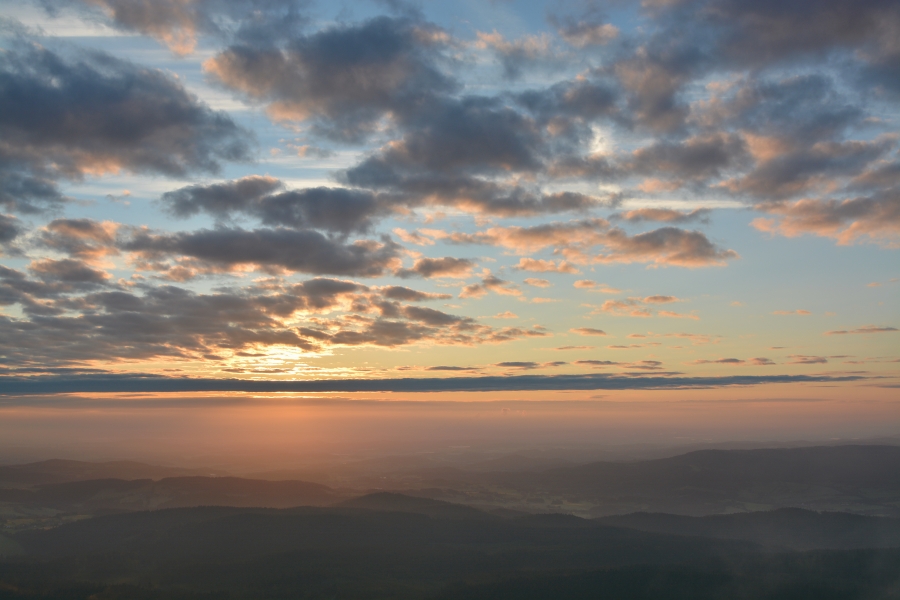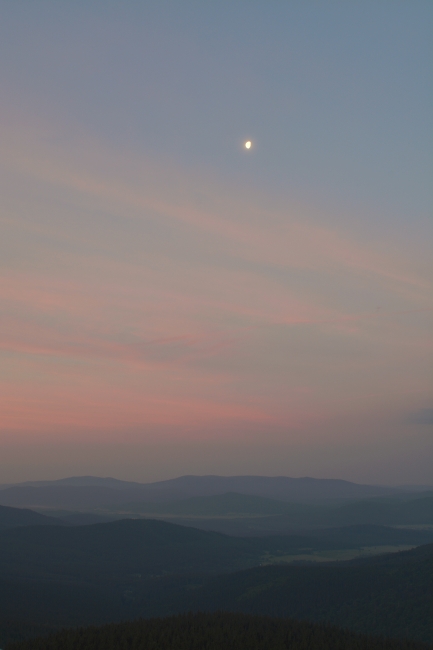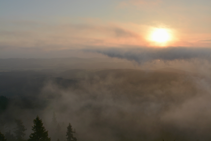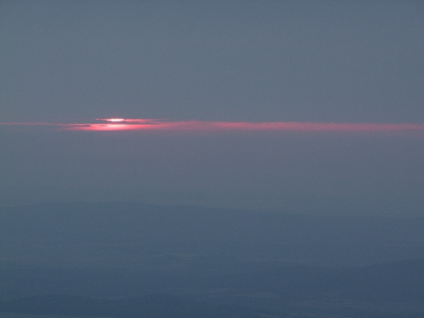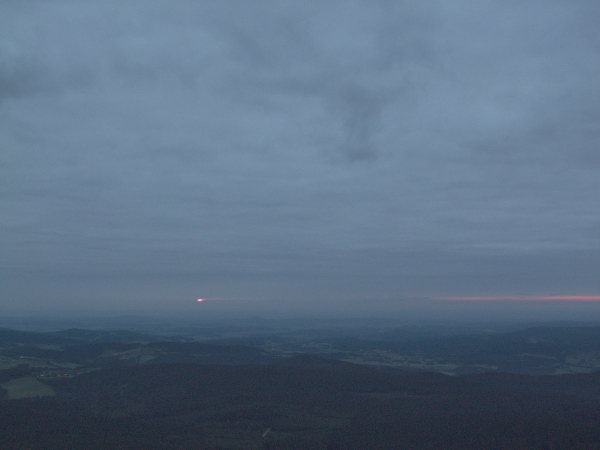 Ačkoli nemáme šanci odhalit, kdo historicky poprvé vyslovil příměr, že vzduch se dal krájet, je zcela jisté, že být onen neznámý autor přítomen na dnešním ranním Boubíně, musel by jedině zajásat nad tím, jak jeho okřídlená větička dokonale padá na úrodnou půdu. Již cestou vzhůru totiž dusný vzduch doslova stál – výchozí teplota na Kubovce činila před půl čtvrtou +20°C. Návaznost na předchozí týden tedy v daném ohledu stále funguje, ba s vzestupnou tendencí. Na našem slavném vrcholu však zrovna dnes nebylo možno chybět. Především tu byla příležitost vystoupit na něj ještě na jaře a následně odcházet již v létě – ona změna v astronomickém smyslu byla záležitostí příští hodiny po příchodu na rozhlednu.