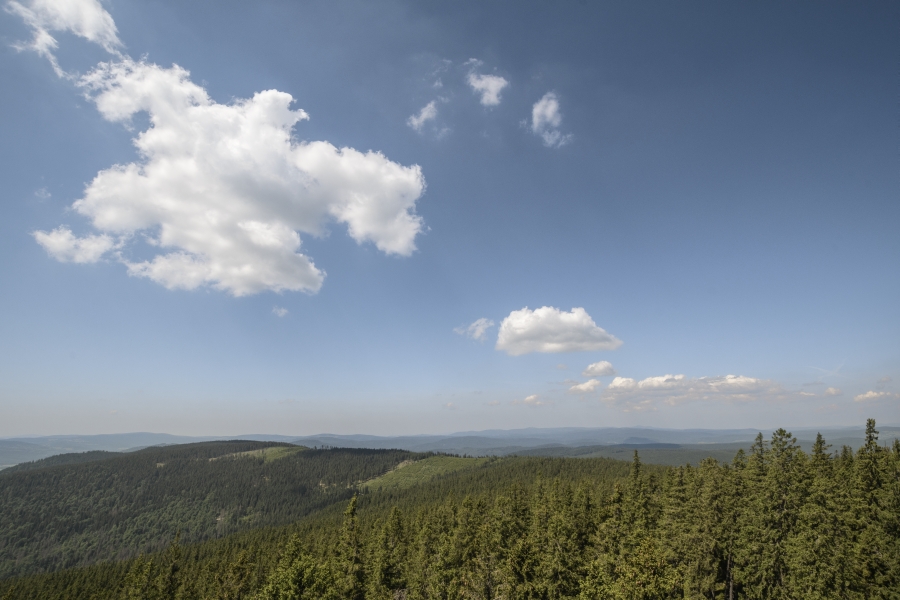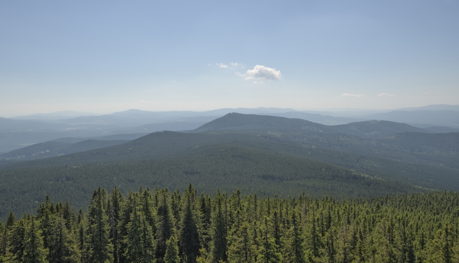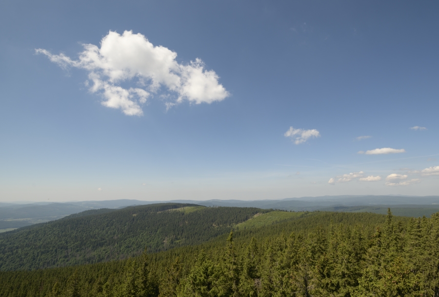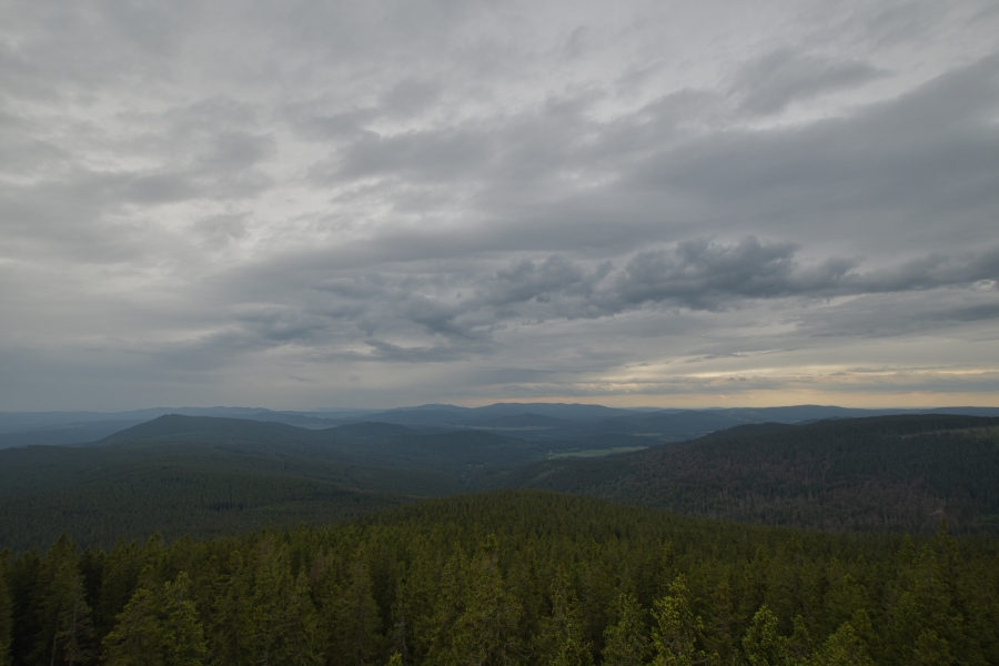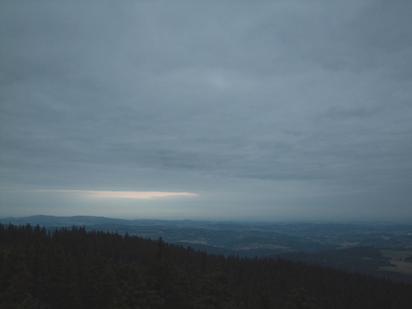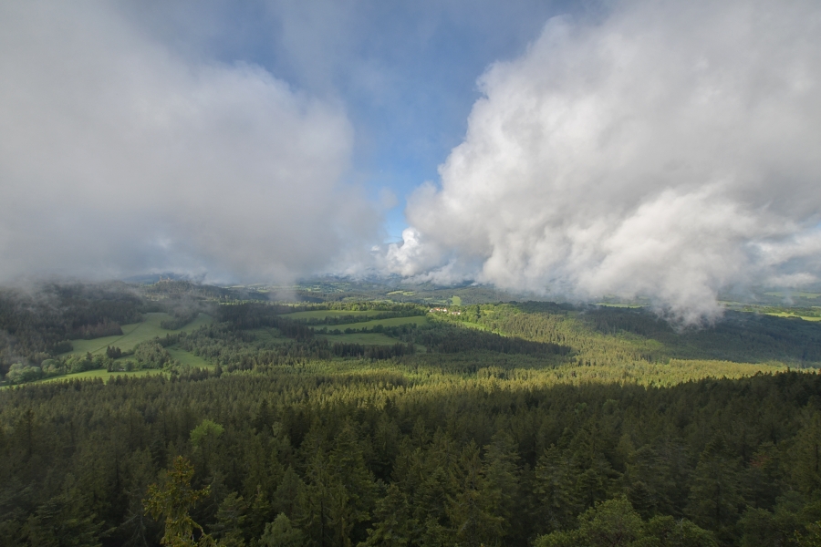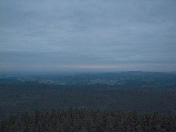 … doputoval na nejvyšší vyhlídkové místo české části Šumavy z relativně nedalekých, neb v každém případě odtud bez problému dohlédnutelných Českých Budějovic.