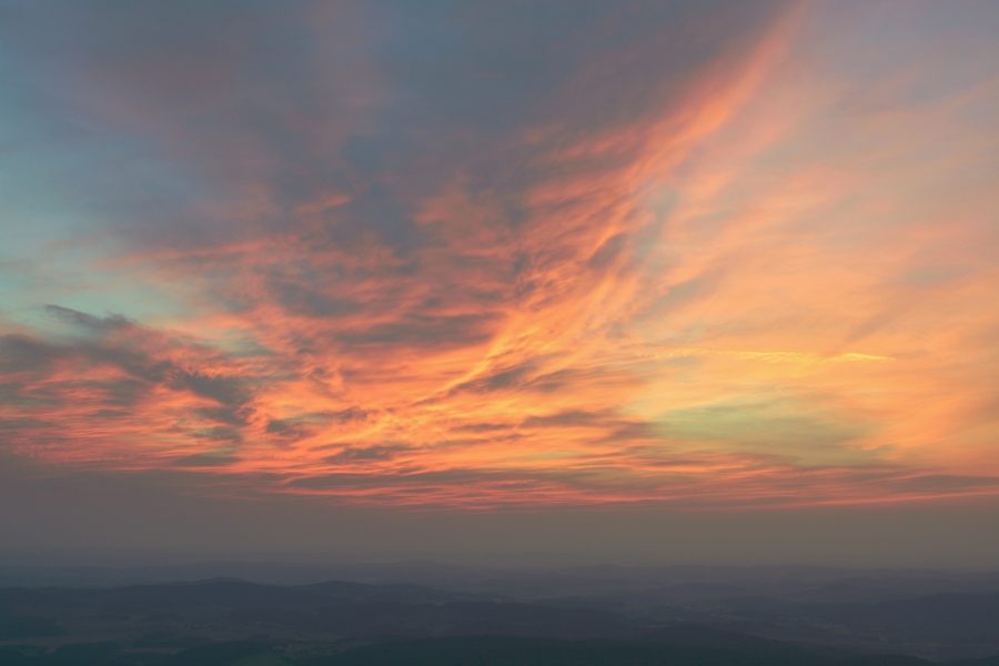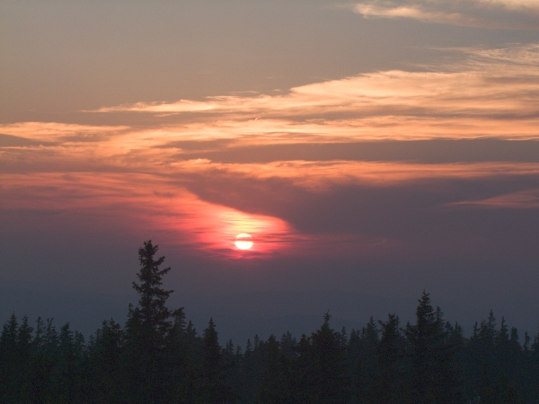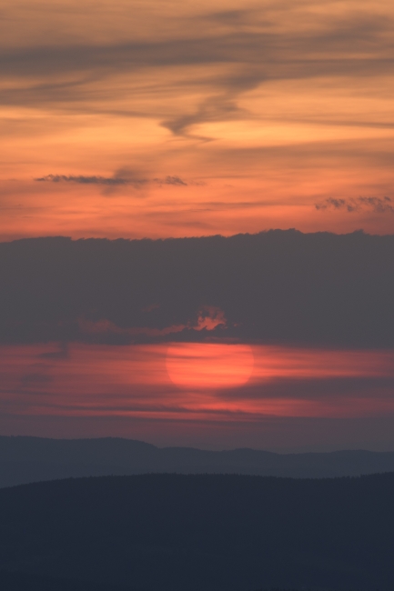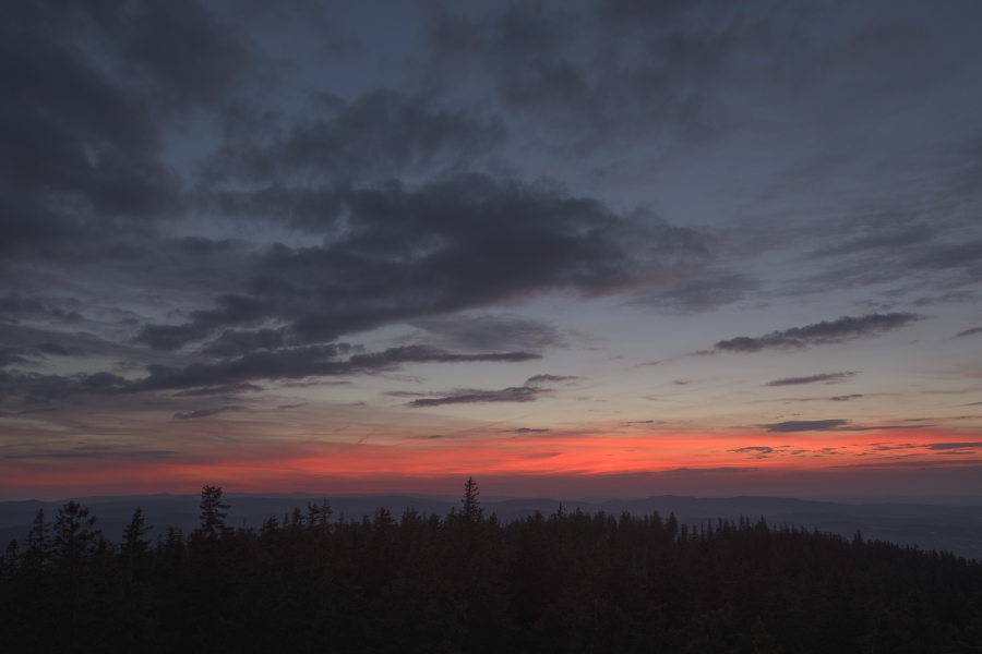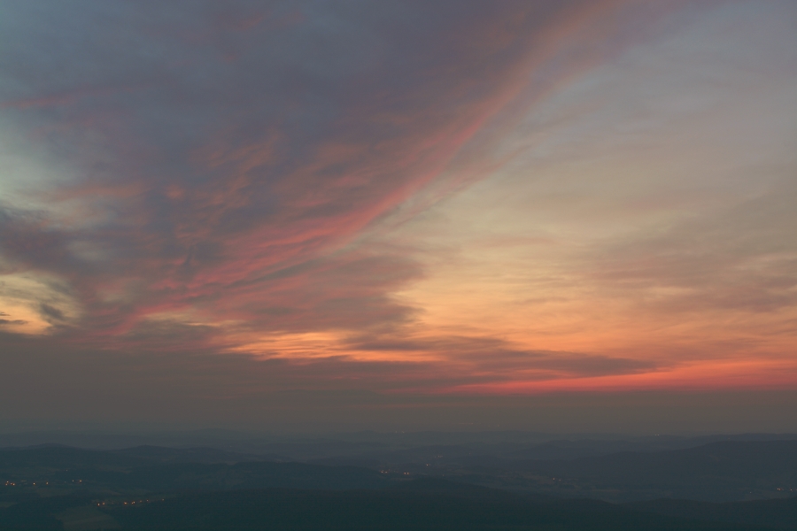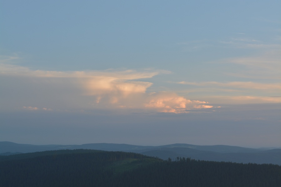 Těžko hledat pro dnešní den vhodnější přívlastek nežli tropický. Vimperská teplota dosáhla po poledni hodnoty +34°C a meteorologický radar později odhalil na severozápadě Čech poměrně silné bouřkové aktivity. Ve slabší podobě je zachytil také nad Šumavou, ovšem těsně za hranicemi s Německem, takže do našich končin sem tam dolehly všehovšudy slabé ozvěny hromů. Večerní obloha se sice zatvářila v daném ohledu velmi slibně, ba i něco málo symbolických dešťových kapek upustila, …