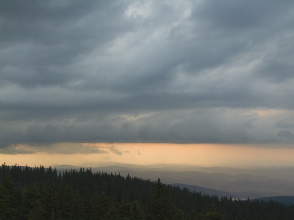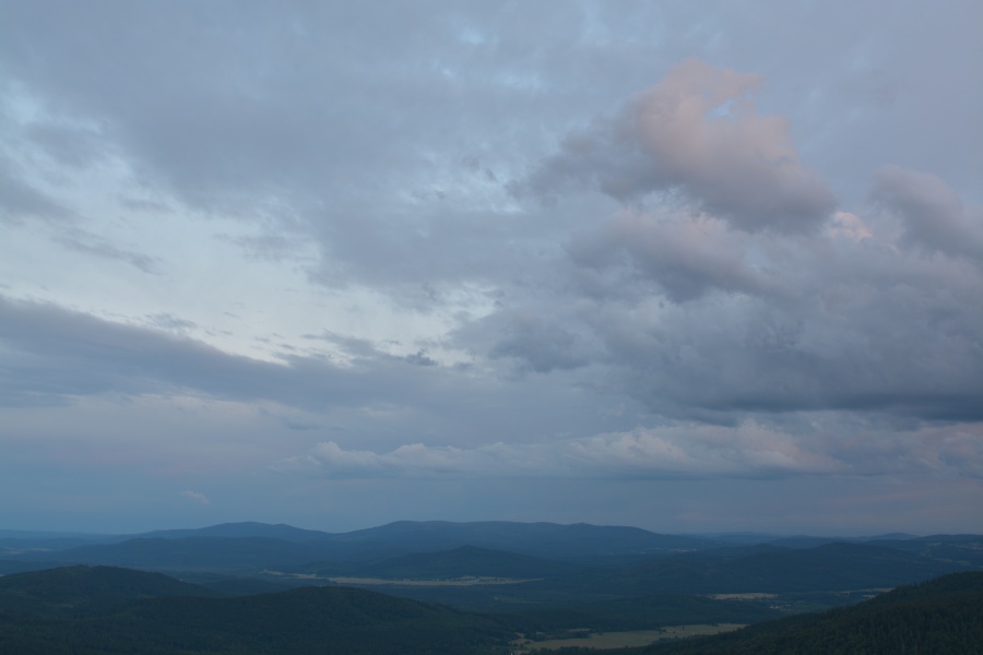 V Rakousku se chvílemi blýskalo, avšak zjevně z velké dálky, neboť po nějakém hřmění nebylo ani slechu. Přesto se stále jevilo velmi napínavým sledovat mnohoznačný vývoj oblačnosti nad Trojmezenskou hornatinou.