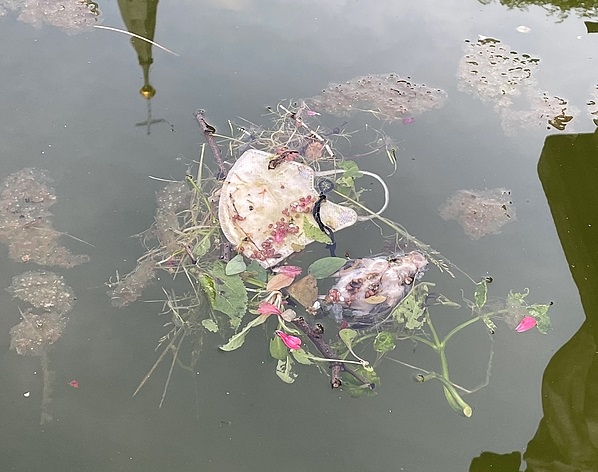 Stav vody v horní a dolní kašně na vimperském náměstí. Delší dobu je voda zakalená, plave zde odpad, uhynulý pták a u dolní kašny nejsou funkční trysky.