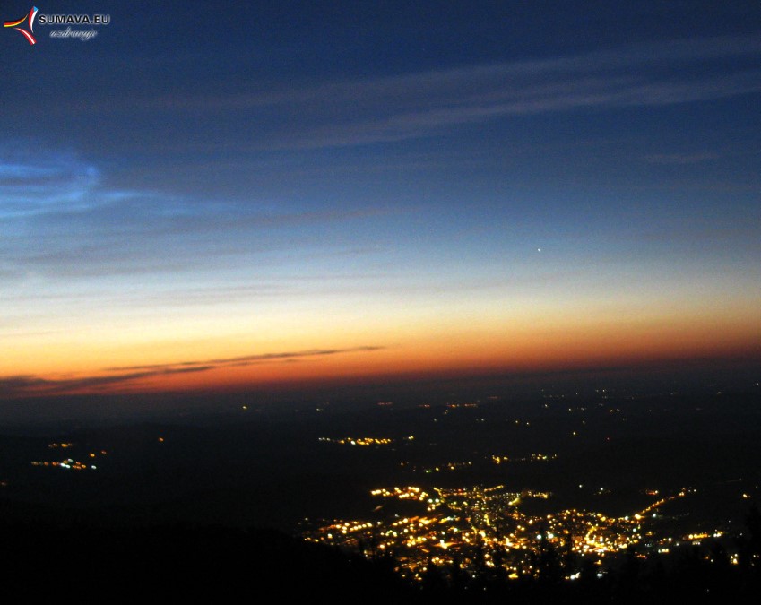 Období kolem letního slunovratu nabízí na našem území pozorování nočních svítících oblaků – velmi vysoko, až v nejchladnější vrstvě atmosféry sluncem i v noci nasvícená, se vyskytující řídká nitkovitá oblaka stříbřité barvy. Letos byl tento úkaz částečně pozorovatelný nezvykle brzy, již na konci května v noci z 25. na 26. např. z Libína a Volar (viz. poslední dva snímky pod článkem). Přesto jsme díky častému výskytu zamračených a deštivých dnů (nebo naopak čistě jasných) v tomto období na Šumavě, na rozdíl od severnějších částí našeho území, moc příležitostí k zaznamenání tohoto jevu neměli. V noci z 3. na 4. července se přeci jen některým kamerám SUMAVA.EU povedlo tyto „noctilucenty“ (NLC, noctilucent clouds) alespoň trochu zřetelněji zaznamenat. Lépe viditelné jsou v tomto směru na níže uvedených snímcích z Vítkova hrádku a nad Prachaticemi, hůře pak z Volar (v levé horní části snímku) nebo Kašperku či Libína (na snímku vpravo nahoře). Už jen pár týdnů zbývá a napoví, zda ještě budou možnosti na kvalitnější pozorování svítících oblaků ze Šumavy tak, jako tomu bylo např. v roce 2019 (odkaz zde) a 2020 (odkaz zde).