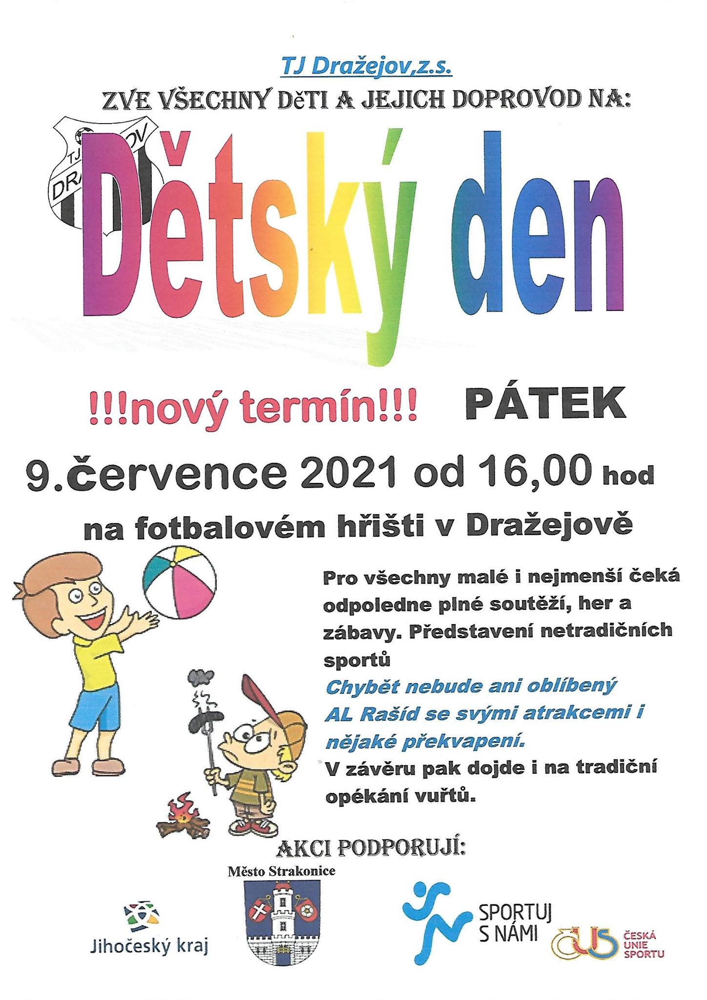 O osudu prvního termínu letošního dětského dne rozhodlo počasí, když přívalové deště zaplavili část sportoviště Na Virtě a akce se musela zrušit a jako nový termín konání byl vybrán pátek 9. července od 16:00 hod.