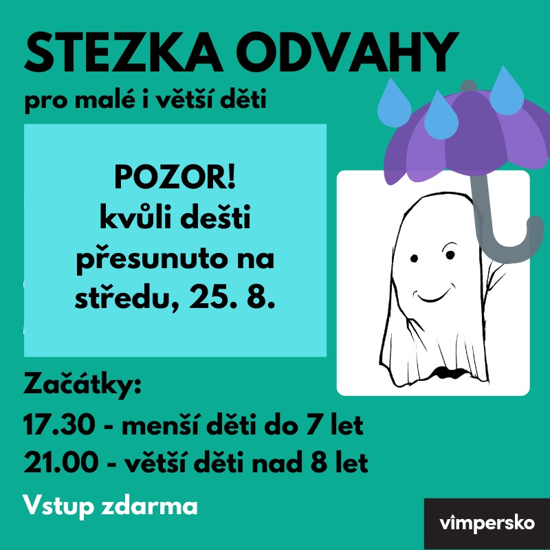 Dnes se měla konat Stezka odvahy, ale bude celý den pršet, tak jsme ji přeložili na středu 25. 8. 2021