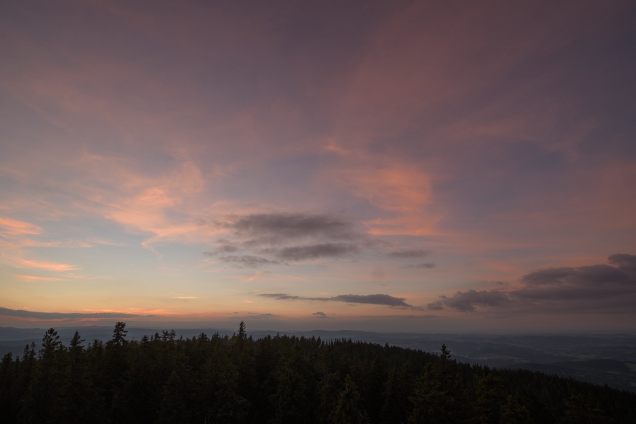 Vrcholem posledního boubínského zářijového večera se pak stala Zugspitze, jejíž viditelnost nebylo možno s ohledem na to, že se nachází vzdušnou čarou o sto kilometrů dále nežli běžně vídané Alpy či Klínovec, rovněž hodnotit jinak nežli jako výsostně brilantní. Připočteme-li k tomu mocně se rozléhající koncert králů lesa, nelze než konstaovat, že takřka magická atmosféra místa i času byla naprosto dokonalá.