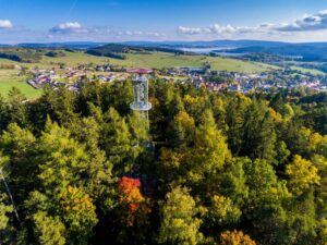 Nedaleko Horní Plané je nová rozhledna, která tvarem připomíná karafu na vodu U „Červeného křížku“ na hřebeni návrší Dobrá