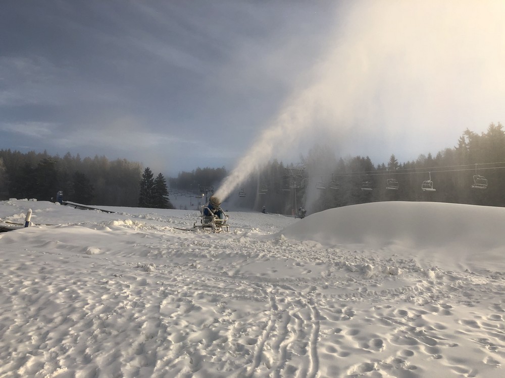 Skiareály na Lipensku zahájily tento týden zasněžování svých sjezdovek. Provozovatelé lyžařských areálů v Lipně nad Vltavou a ve Frymburku plánují, že budou umělý sníh v následujících dnech vyrábět téměř nepřetržitě. Park Frymburk chce otevřít sezónu 27. prosince, což je stejný den, kdy měli v plánu zahajovat také minulý rok. Ke stejnémuIMG 4345 dni byly lyžařské areály v celé republice uzavřeny. Ve Frymburku nakonec sezónu nezahájili vůbec. „Se zasněžováním jsme začali dříve než v předchozích létech. Loni to bylo například až v prosinci,“ uvádí Martina Ostrýžová z Parku Frymburk. Ve Frymburku vyrábí umělý sníh osm děl Technoalpin, což je nejlepší současná technika.