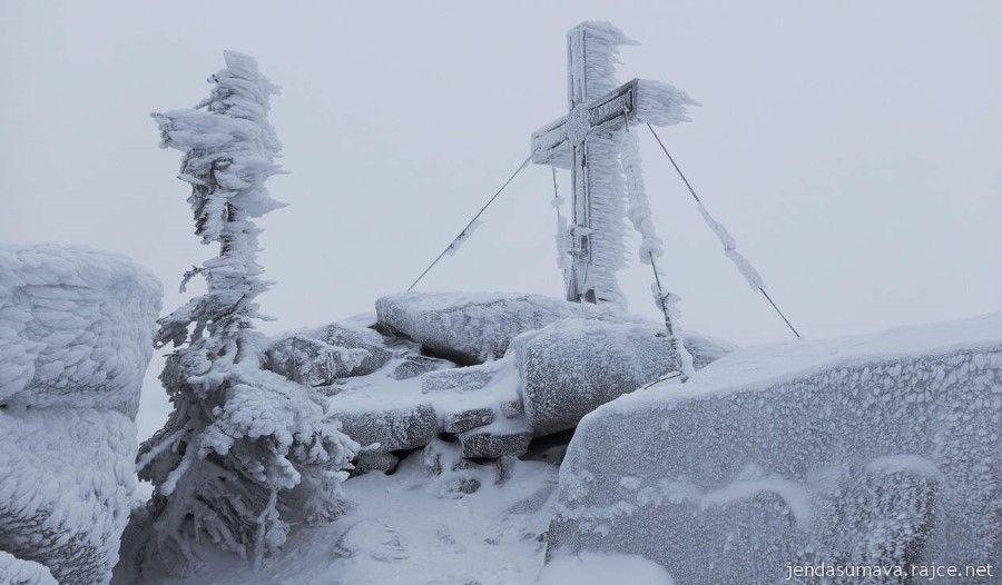 Po vydatnějších srážkách a ochlazení se na přelomu listopadu a prosince, tedy na počátku meteorologické zimy, vytvořila na Šumavě místy již solidní sněhová pokrývka. Hustá oblačnost trvale lemující nejvyšší vrcholy navíc způsobila tvorbu námrazy, tak to na hřebenu Šumavy vypadá jako na vrcholu zimy. Konkrétní hodnoty výšky sněhové pokrývky zimy budou součástí pátečního sněhového zpravodajství. O den dříve, 2. prosince, proto přinášíme zatím jen dnešní snímky té pravé zimní atmosféry z hřebenu Trojmezné hory.