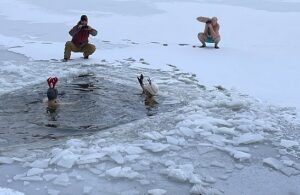 Otužilci na Vodníku Tak jako každý rok se dnes 26. prosince sešli všichni příznivci zdravého životního stylu k otužování na Vodníku ve Vimperku.