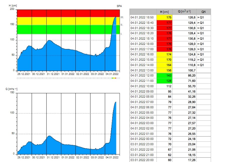 Předpověď počasí se naplnila a Šumavu 4. ledna zasáhl vydatný a trvalý déšť, který doprovázelo větrné a teplé počasí. Tato kombinace způsobila výrazný vzestup hladin řek především na Klatovsku. Srážkové úhrny dosáhly za 24 hodin v centrální části Šumavy od 30 do 60 mm. Nejvyšší denní úhrn hlásila k 19. hodině (4.1.) stanice ČHMÚ v Prášilech a na Bučině. Srážky byly ve všech polohách dešťové, jen v ranních hodinách v nejvyšších polohách přechodně sněhové.