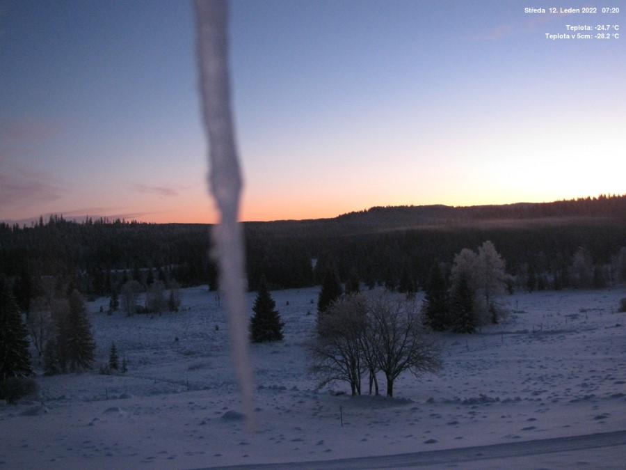 Mrazivé ráno 12. ledna 2022 pohledem našich webkamer: