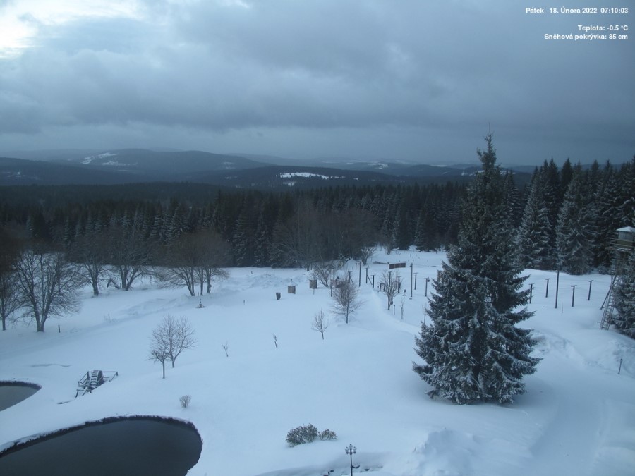 Sněhová pokrývka na Šumavě před týdnem Sněhový servis 11. února 2022