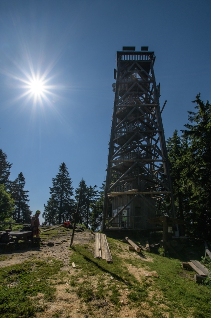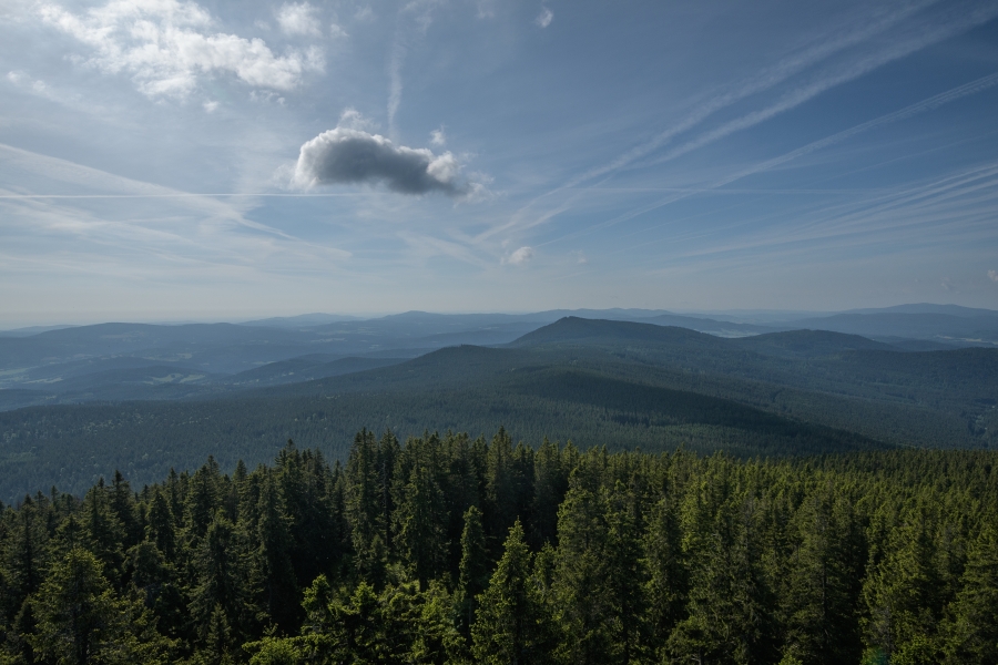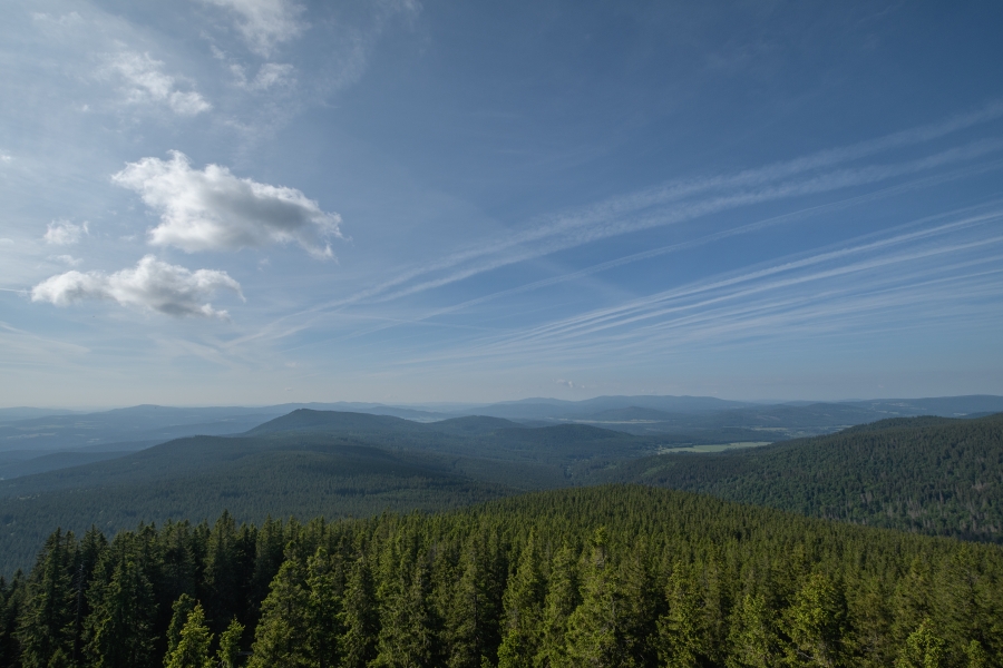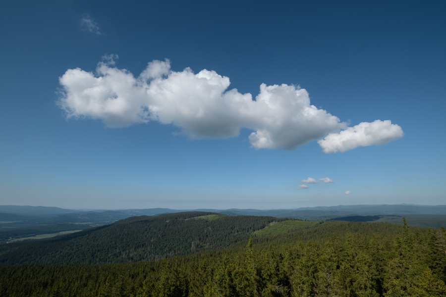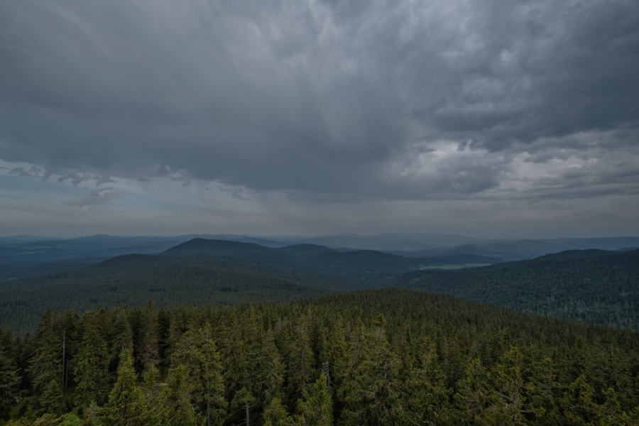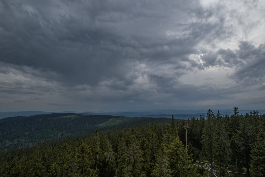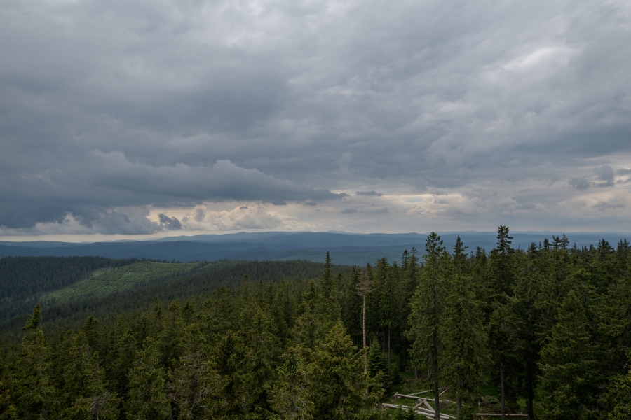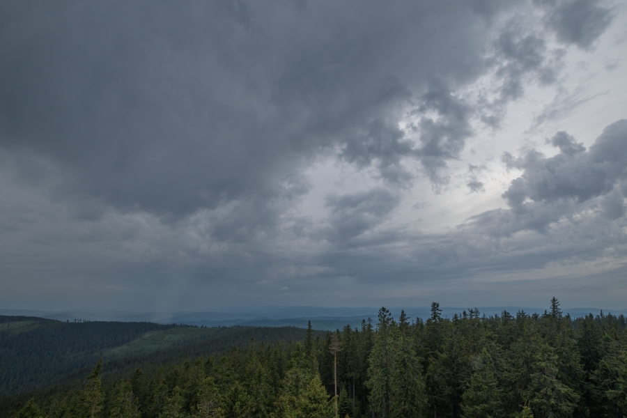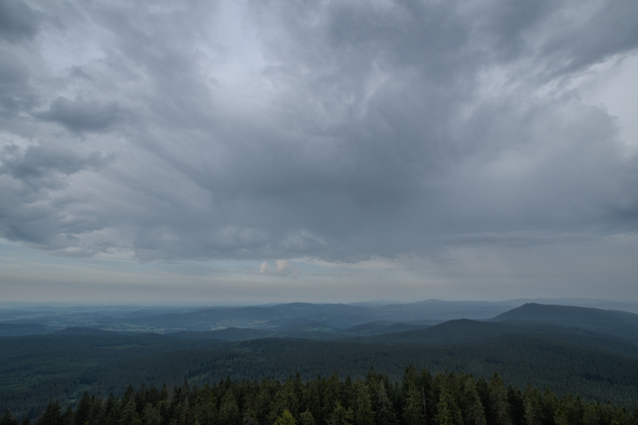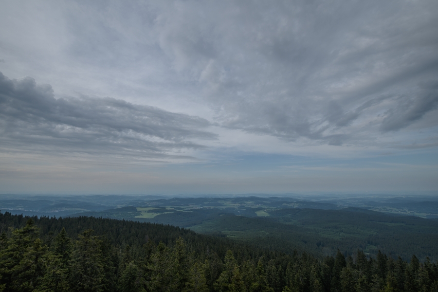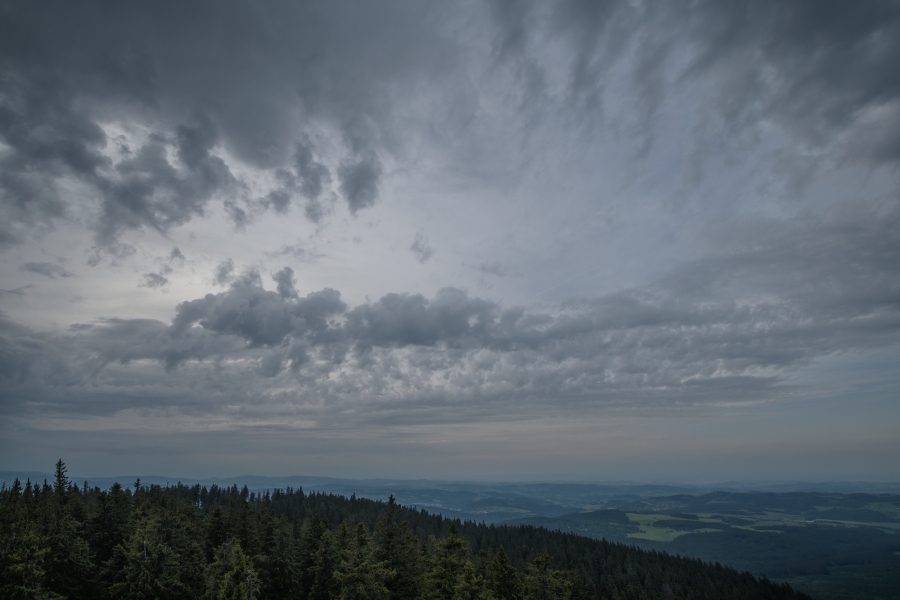 Kdyby byl dnešní výstup na Boubín načasován k slunečnímu východu, čekala by nad rozhlednou modrá obloha s minimem osamělých mráčků. Desátá hodina jich teoreticky slibovala více a zajímavějších, jenže v praxi vše pojala poněkud jinak.