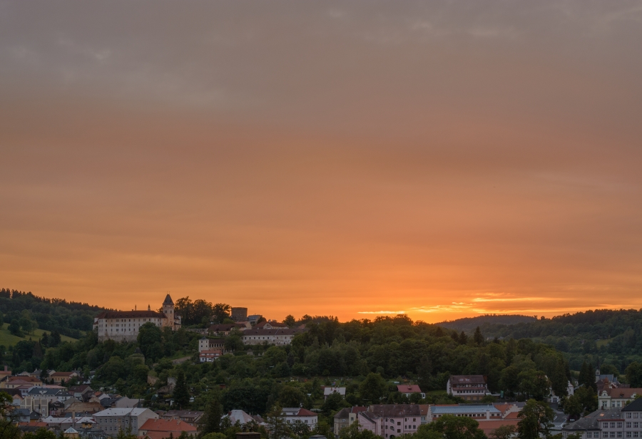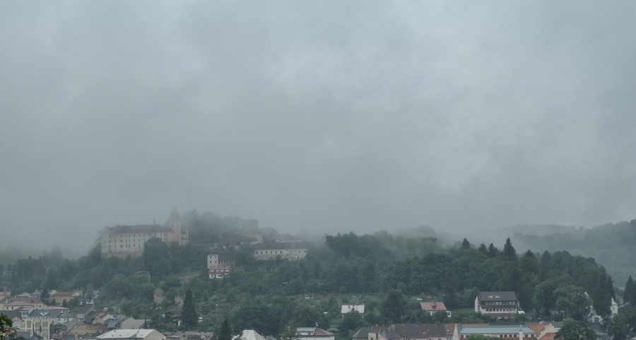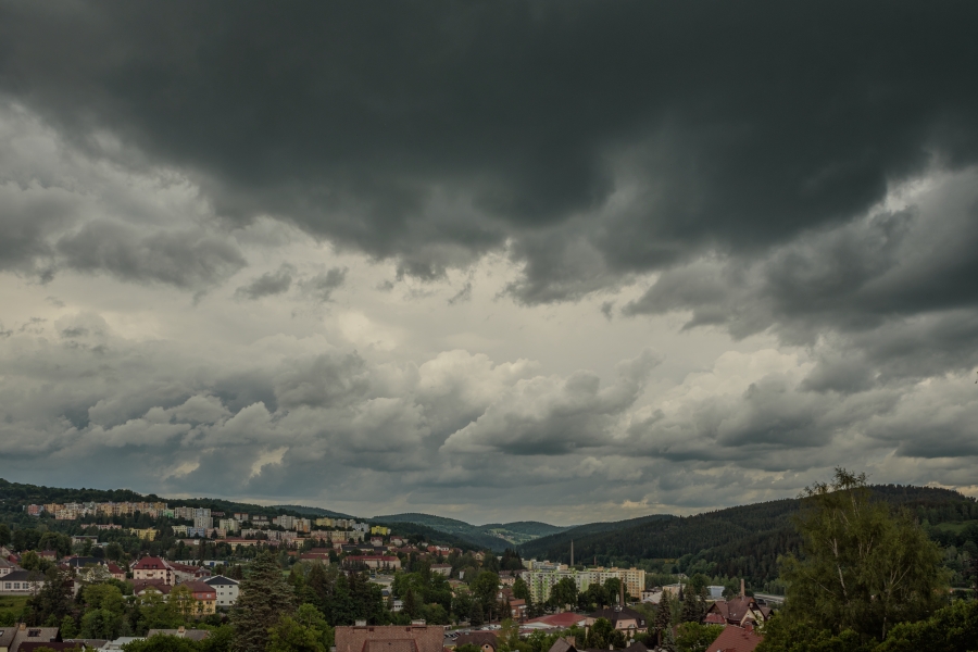 Poslední červnové pondělí navázalo na vysoké víkendové teploty ještě větším celodenním dusnem, takže bylo obrazně i doslova ve vzduchu, kdy z toho povstanou další bouřkové aktivity. Došlo na ně ve večerních hodinách a Vimperk z nich opět vyšel prakticky nedotčen – na rozdíl od Prachaticka a zejména Strakonicka a Volyňska, odkud přicházely katastrofické zprávy o nemalých hmotných škodách. Způsobovalo je především přidružené krupobití, při němž kroupy, velikostně se pohybující mezi pingpongovými a tenisovými míčky, rozbíjely zejména skleníky, ba ušetřenými nezůstala ani některá automobilní okna, o střechách a kapotách nemluvě. Vývoj na vimperské obloze, zejména nad zámkem, ovšem také působil přinejmenším jako výstraha …