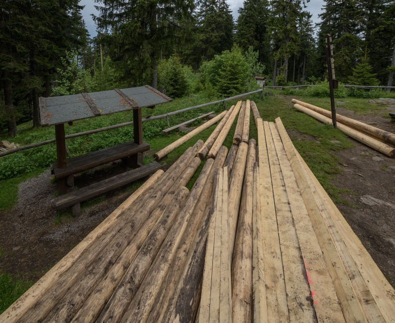 Co odmítla rozhledna, přineslo nakonec velmi překvapivě úbočí. Ač tu déšť definitivně přestal žertovat, takže v minutě bylo prakticky jedno, jak rychlou chůzi člověk zvolí, neopětovat tak úchvatně nabídnutý sluneční pozdrav, obzvláště pak za současného doprovodu blesků a hromů, by bylo těžkým prohřeškem.