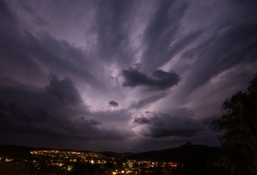 Občas došlo i k výše již vzpomenuté výjimce, když ojedinělý blesk přece jen zamířil dolů k zemi. Popsané dění utichlo ještě do půlnoci. Teprve okolo třetí hodiny ranní se přihnala další bouřková vlna, tentokrát již mohem blíže a především s doprovodem lijáku, jenž jistě vítaně osvěžil celodenním dusnem zkoušenou krajinu a, jak už to bývá, úžasně pročistil vzduch.