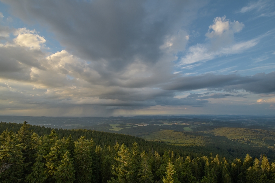 Západočeši – myšleni především Karlovarští, ale i Plzeňáci – dnes, jak se říká, chytili z první ruky vydatné celodenní srážky, které se ovšem v průběhu dne rozšířily i do střeních Čech a částečně též k nám na jih. Bylo tím pádem zajímavé pozorovat podvečerní vývoj na šumavské obloze i pod ní.