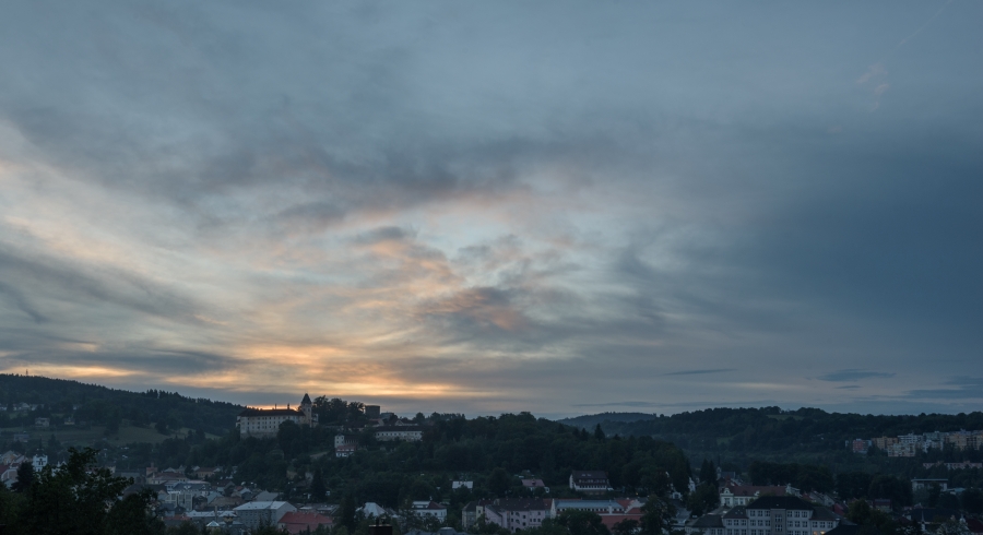 Meteorologické předpovědi slibovaly na odpoledne bouřky a zdálo se, že již ranní vimperská obloha jim čímsi dává za pravdu.