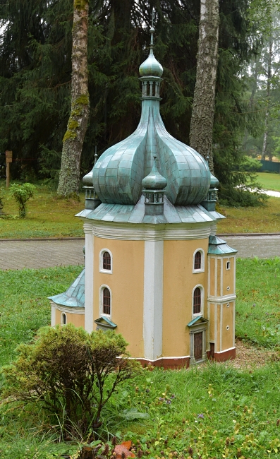 Kuriózní procházku zakončíme u miniatury dřevěné poutní kaple Panny Marie na Stožci.