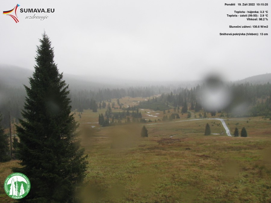 V letošním září jsme si slunce krom prvního týdne moc neužili, zato srážek spadlo postupem času místy požehnaně. Nejvyšší úhrn srážek 292 mm jsme na Šumavě zaznamenali na Jezení hoře, kde byla část srážek ve formě sněhu (referovali jsme zde a zde). Vyšší úhrny srážek se na Šumavě všeobecně vyskytly v její západní části. Na vrcholu Poledník spadlo v září 275 mm, na bavorské stanici Grosser Arber 263 mm a na stanici Špičák 261 mm, což je zde druhý nejvyšší zářijový úhrn od roku 1964, kdy jsou na této srážkoměrné stanici ČHMÚ srážky pravidelně evidovány. Více tomu bylo jen v září 1984 s úhrnem 356 mm, třetí nejvyšší zářijový měsíční úhrn srážek 256 mm na Špičáku naměřili v roce 1998. Průměrný dlouhodobý úhrn srážek v září je přitom na této stanici kolem 100 mm, proto z hlediska normality zde můžeme září hodnotit srážkově jako silně nadnormální. Z dostupných dat nejvyšší denní úhrn srážek v měsíci zaznamenala stanice NP Šumava Javoří Pila k 18. září, kdy spadlo za 24 h 69 mm. Na Špičáku za ten samý den napršelo 57 mm. Vybrané šumavské stanice s měsíčním úhrnem srážek nad 200 mm uvádíme v přehledu níže. Deštivou atmosféru letošního září zaznamenaly výstižně i šumavské webkamery.