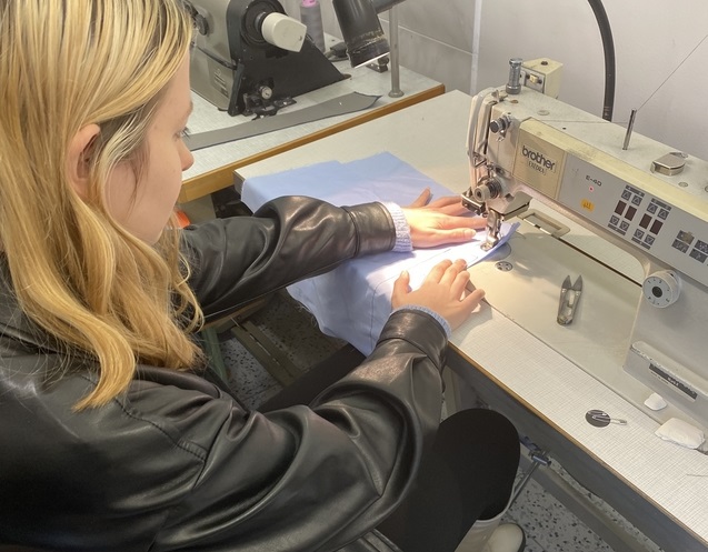 Absolventi se také seznámili s výrobou pánských košil na dílně ve Vimperku, prohlédli si sortiment VAVI a materiály, ze kterých se vyrábí košile, halenky a další produkty. Sami si vyzkoušeli šití na průmyslovém šicím stroji.