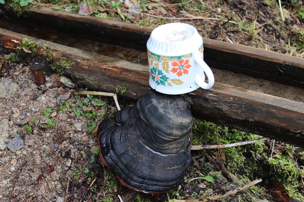 na vrchu té klenby je obloha otevřená, špičkami smrků obroubená, jako by se někdo dobýval do konzervy. Dřevěným žlabem, který tu trčí ze svahu, vytéká voda, na jeho okraji stojí hrníček dnem vzhůru, pod hrníčkem se o žlab opírá choroš a připomíná vytékající hustou kávu. Scházím Zlatou stezkou od náměstí ke gymnáziu, na zídce leží pokroucený list zatížený kamenem, připomíná lasturu, na které přijíždí ke břehu Botticelliho Venuše.Docházím do Bíčpitu. Sedí tu Pošťák a vypravuje mi o návštěvě sociálky. Stála tam bezdomovkyně. „Máte poukaz do potravinové banky?“ zeptala se. „Potravinová banka je prázdná,“ odpověděla pracovnice. „Vy jste nám nějak shodila. Doufám, že nám nezkolabujete.“