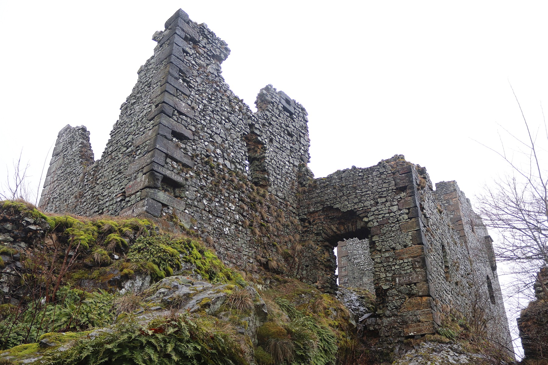 Klubíčko je už pravidelně rychlejší než já. O její fence ani nemluvím. „Tobě se to běhá,“ volám na hovawarda Corliss. „Máš čtyři nohy a drápky.“ Já mám jen sešlapané podrážky, které jsem ráno ve spěchu přilepil k botě chemoprenem. Konečně jsme se vyšplhali mezi hradby hradu. Na starém zdivu jsou ještě napůl čitelné nápisy azbuky. U Mimoně za totality tu pobývala sovětská vojska. Procházíme bludištěm trachytových skal. Chvíli stojíme na vyhlídce. Vítr mi fouká přímo do tváře a pode mnou zeje hlubina. Stále prší, takže i tam, kde v rozhledu nebrání mraky, je krajina zamžená srážkami. Ale na obzoru už rozeznávám stolovitý Děčínský Sněžník. Vstupujeme do hradu. Ve skalní trhlině se drží voda, krůpěje v ní kreslí kruhy, nad vodou se zelená porost osladiče. V závětří za hradní věží tancuje v povětří osamělý list. Cítím, jak mi bundou proniká na tělo vlhkost. Déšť však přesto polevuje. Zvolna se odhaluje pohled k dosud zasněženým Lužickým horám. Mnohé vrcholky jsou ozdobeny vlajícím oblakem k oslavě větru. Meteorologové nazývají tento jev kouřící hora.