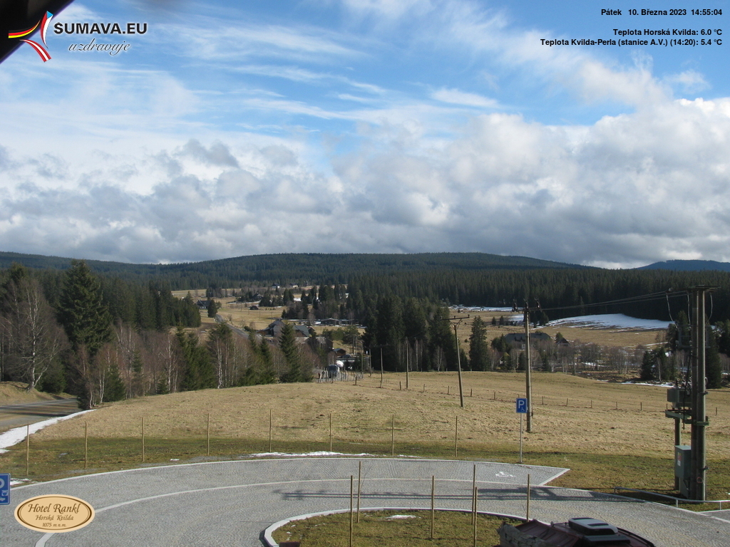 Počasí v podhorském Vimperku, ale i na horách bylo jako na houpačce. Ve středu 08.03. přišla změna. Po poledni začal padat mokrý sníh, který po půl hodině přešel v déšť. Srážky s oteplením a větrem dokázaly během jednoho dne zlikvidovat zbytky zdejší sněhové pokrývky i z odvrácených svahů nad městem.