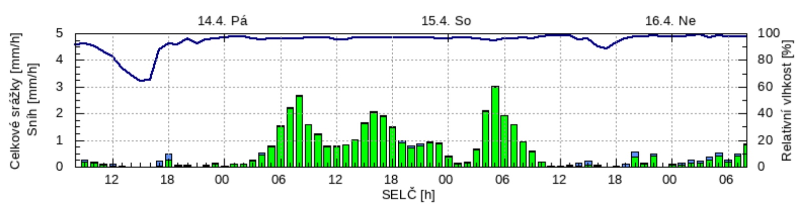 V polohách nad cca 900 m.n.m začne v noci na pátek 14.04. vydatně sněžit. Do sobotního poledne napadne v nadmořských výškách nad 1000 m.n.m mezi 20-40 cm nového mokrého těžkého sněhu.