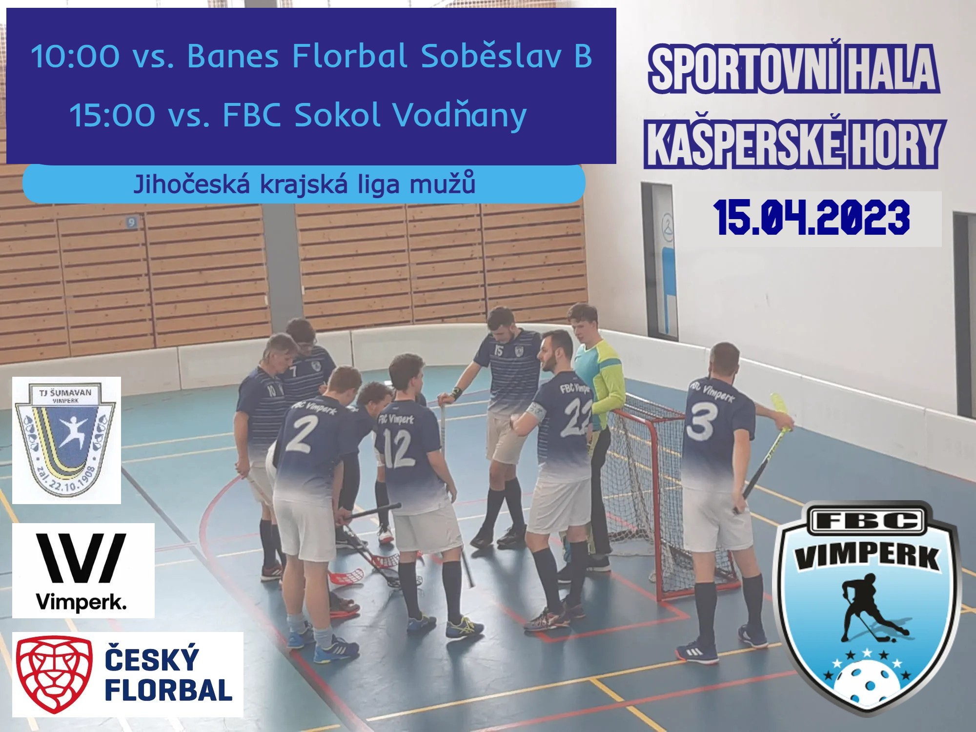 Zveme všechny fanoušky sportu, a především florbalu do sportovní haly v Kašperských Horách, kde zítra odehrajeme poslední turnaj této sezony. Nyní je situace taková, že našemu týmu chybí jeden bod k zisku prvenství v Jihočeské lize.